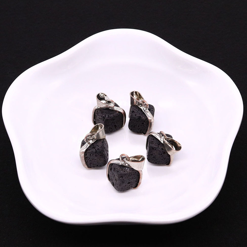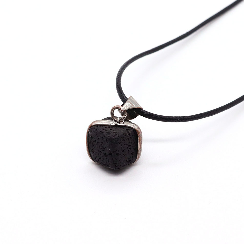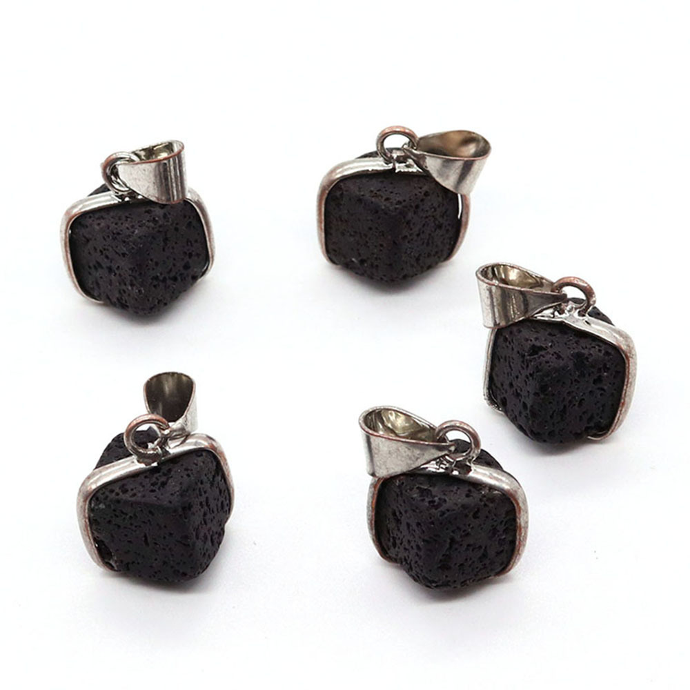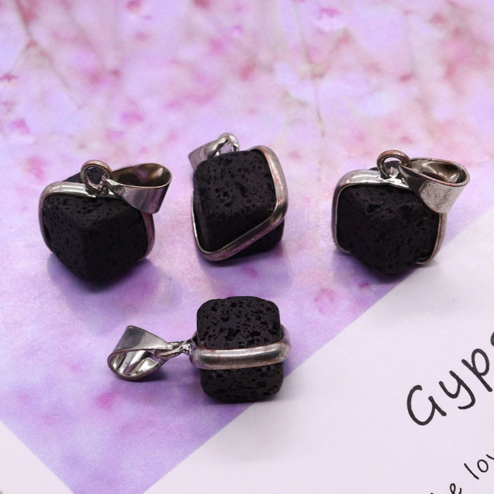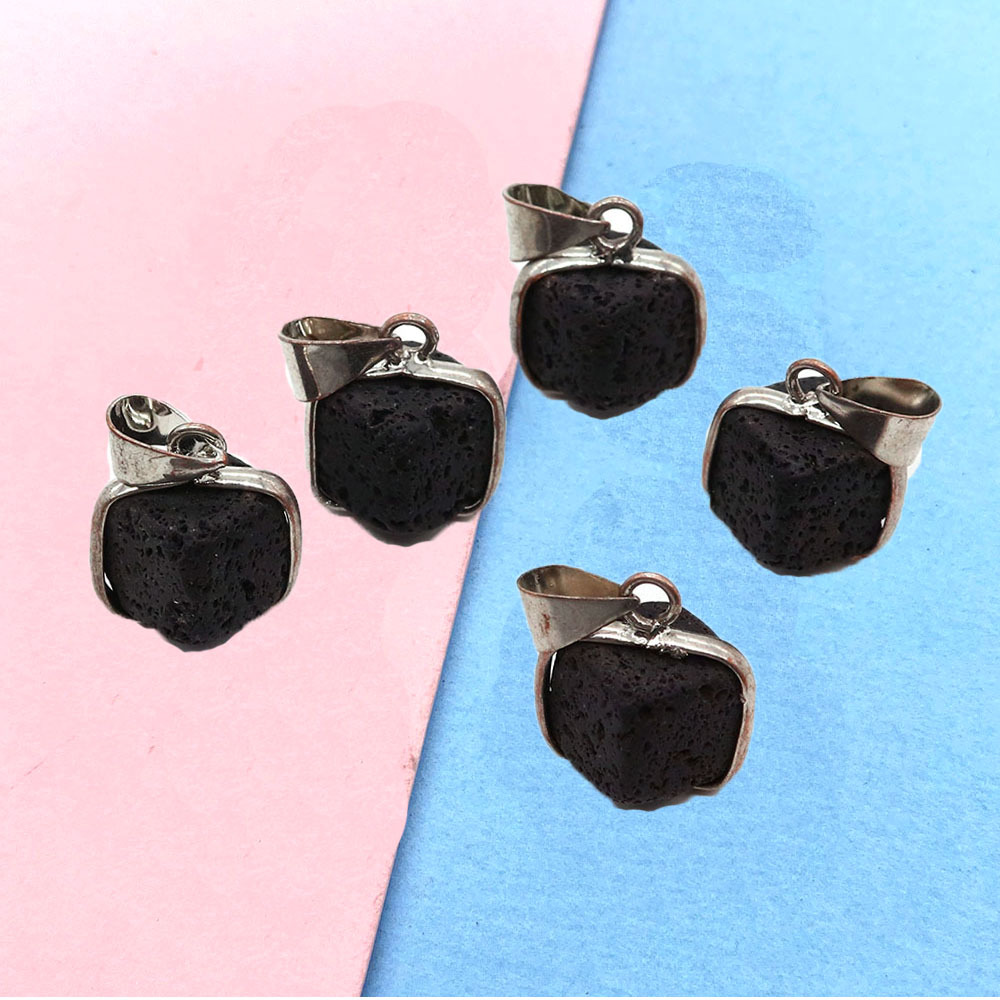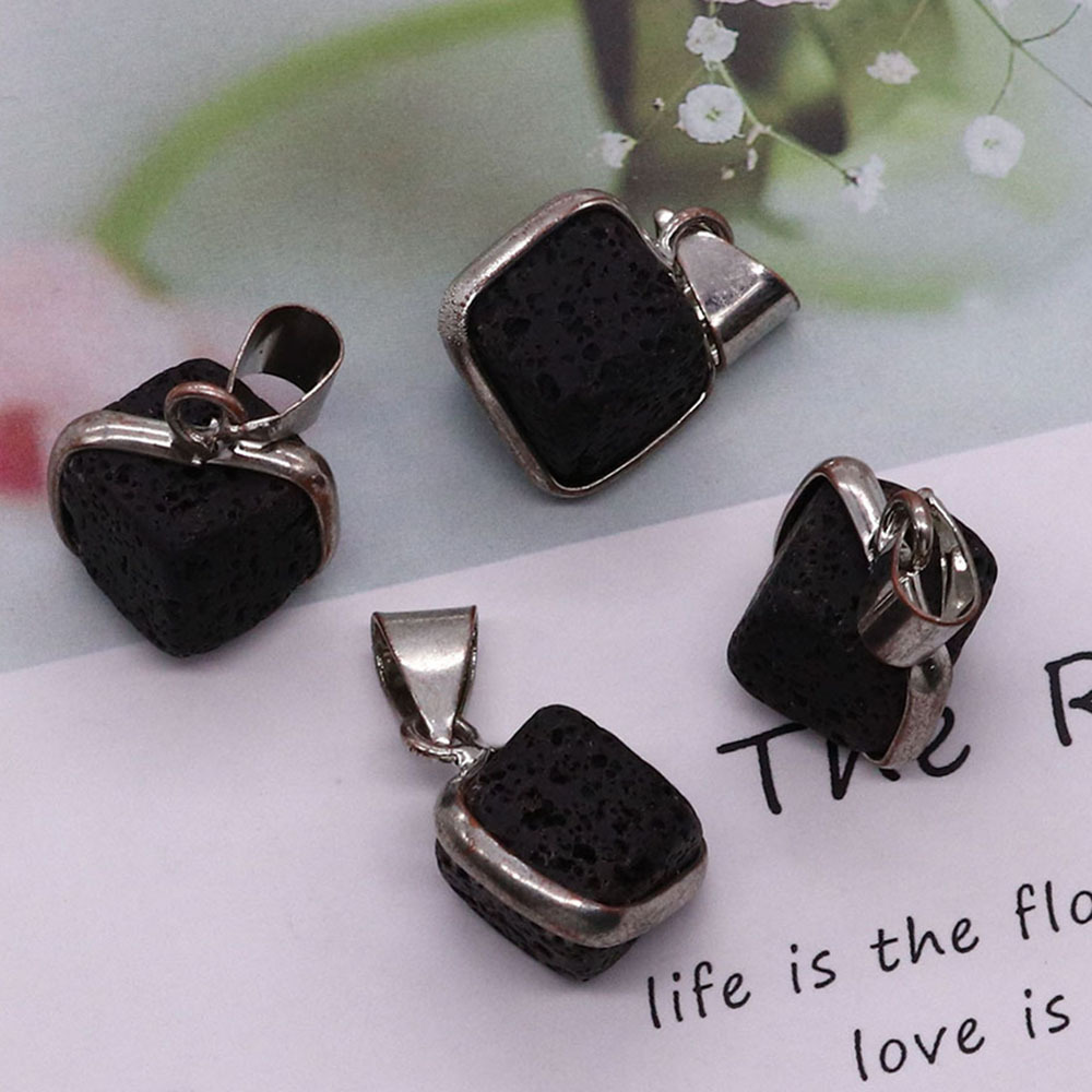 Pendentifs de lave, lave volcanique, avec cordon en cuir & Acier inoxydable 304, Carré, Placage de couleur argentée, DIY & styles différents pour le choix, plus de couleurs à choisir, 17x18mm, Vendu par PC