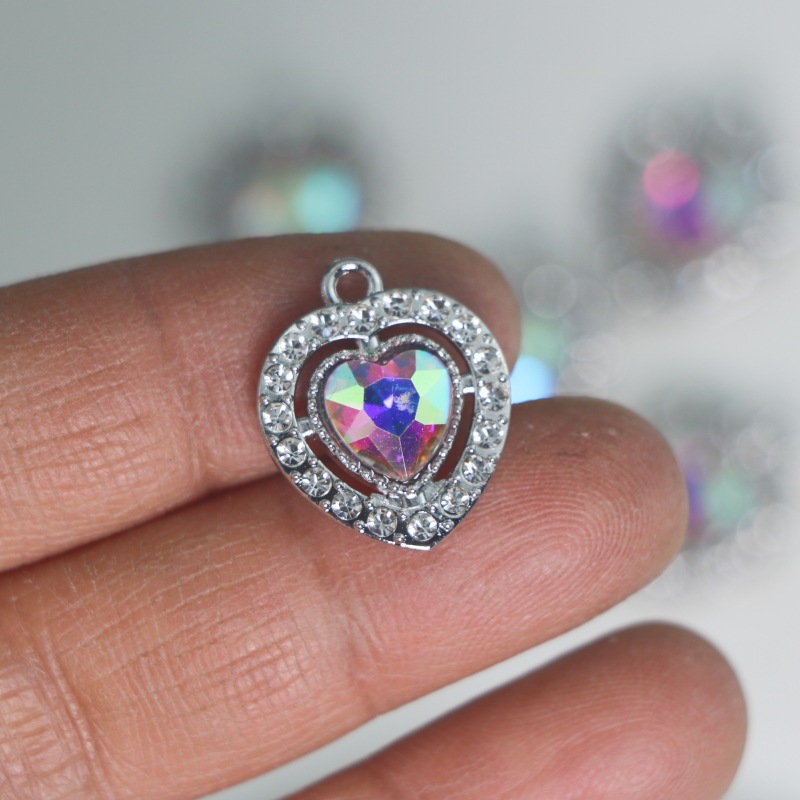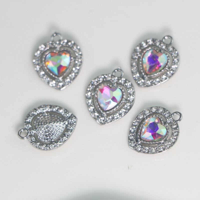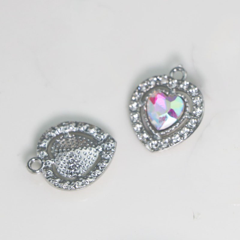Pendentifs de stras en alliage Zinc, alliage de zinc, coeur, Placage de couleur argentée, DIY & avec strass, Vendu par PC