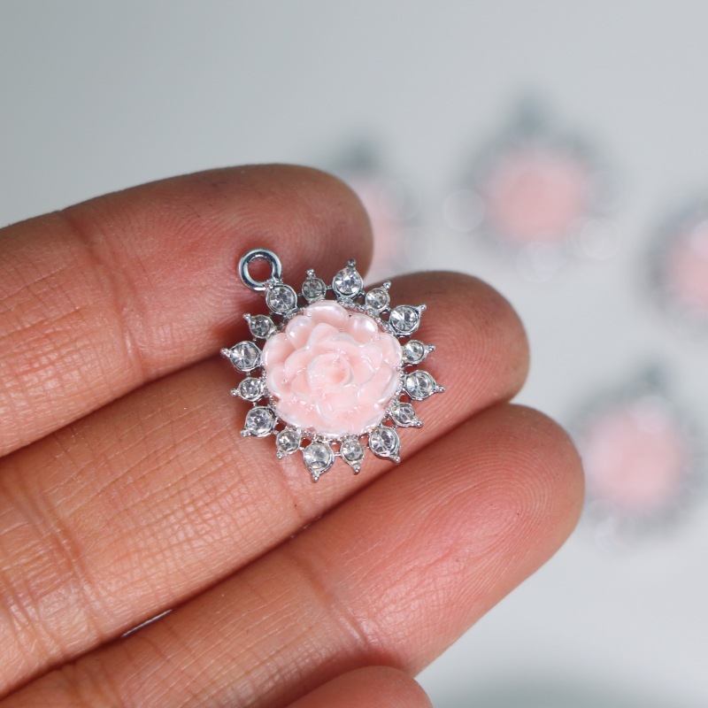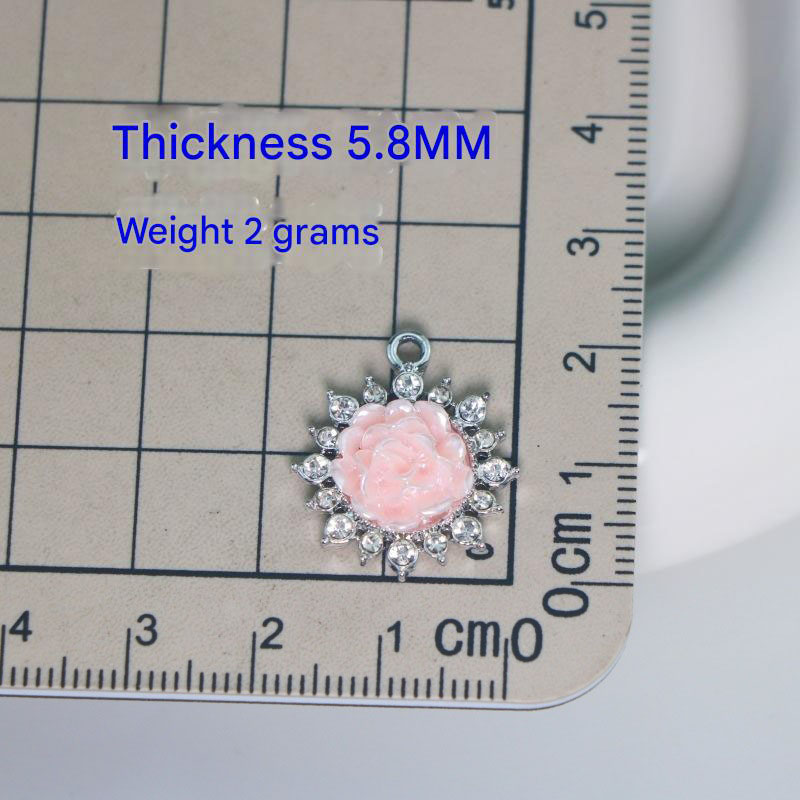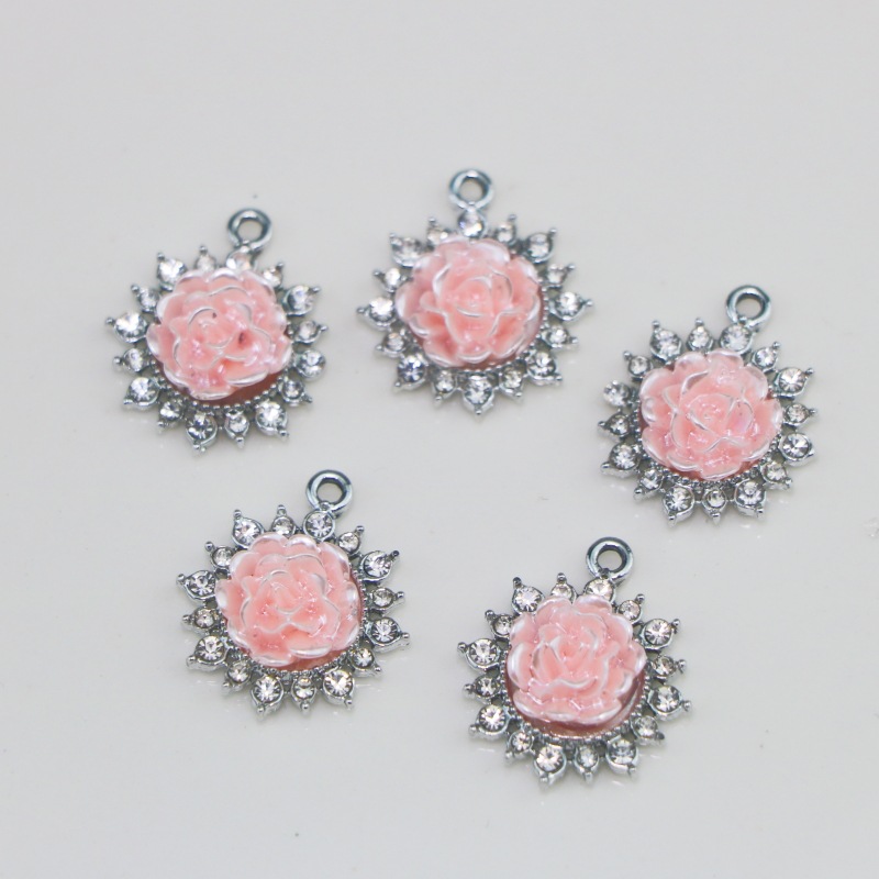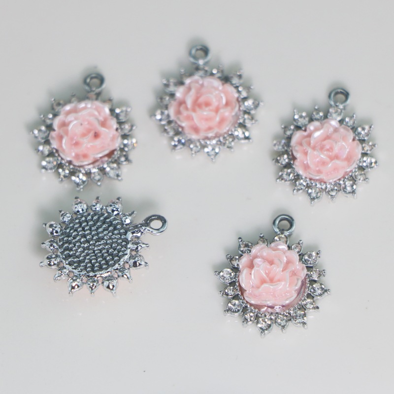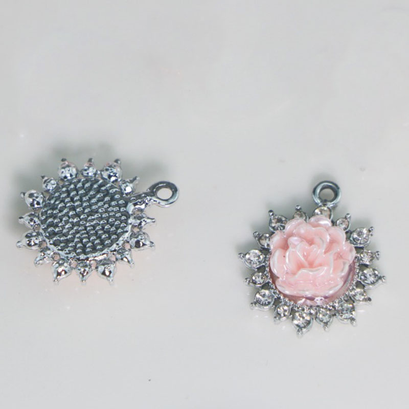 Pendentifs de stras en alliage Zinc, alliage de zinc, avec résine, Rose, Placage de couleur argentée, DIY & avec strass, rose, Vendu par PC