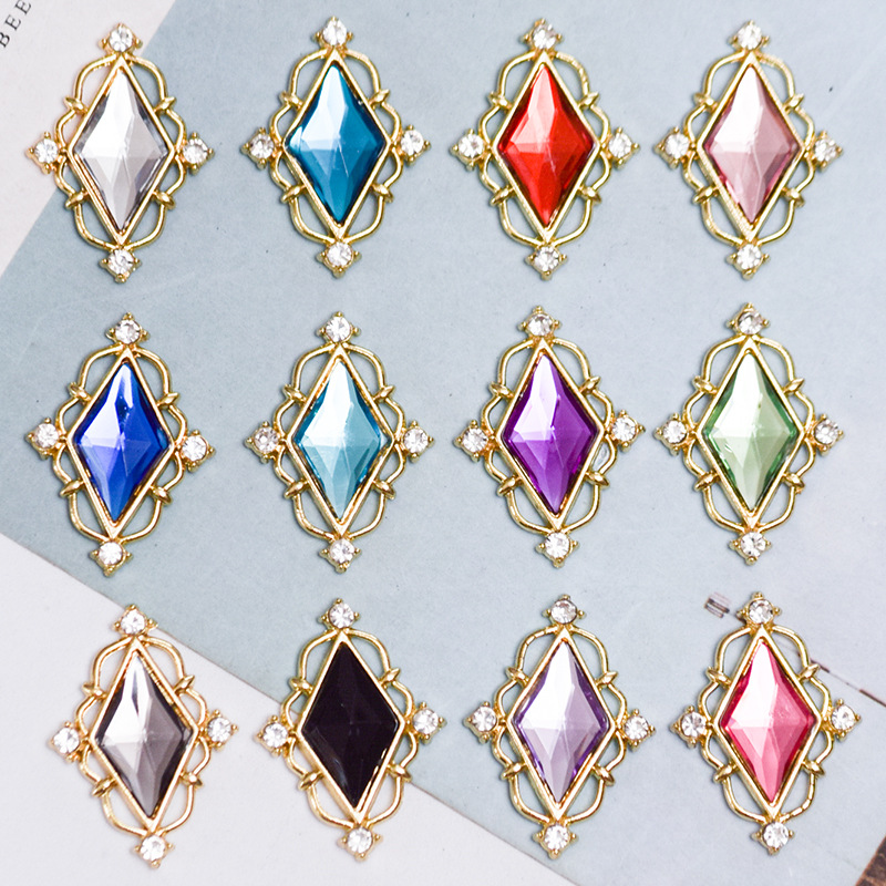 Pendentifs de stras en alliage Zinc, alliage de zinc, Losange, Placage de couleur d'or, DIY & avec strass & creux, plus de couleurs à choisir, 22x30mm, 10PC/sac, Vendu par sac