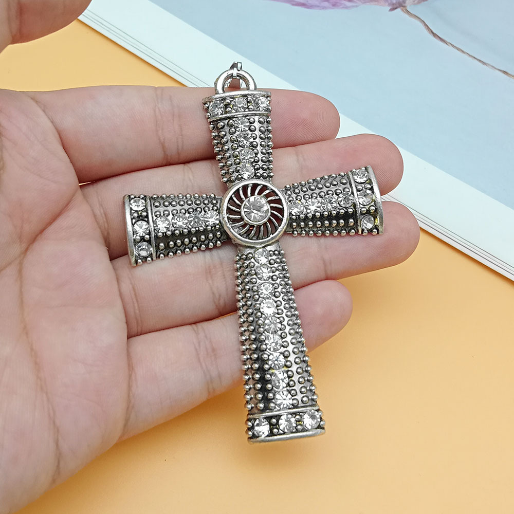 Pendentifs de stras en alliage Zinc, alliage de zinc, croix, Placage de couleur argentée, DIY & avec strass, plus de couleurs à choisir, Vendu par PC