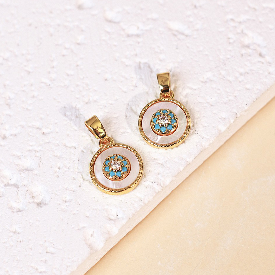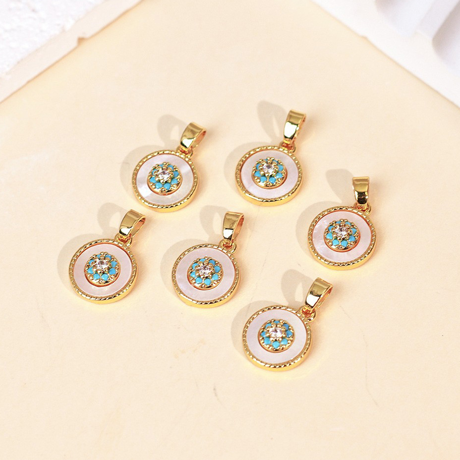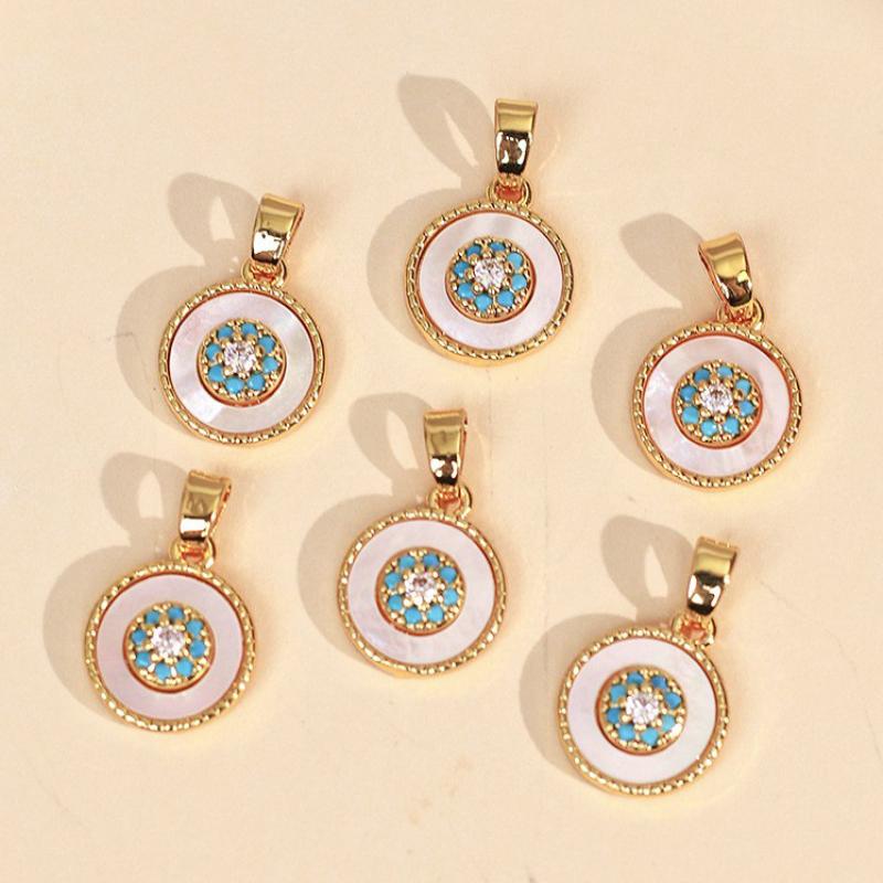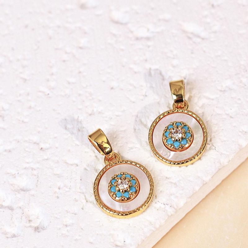 Pendentifs de stras en alliage Zinc, alliage de zinc, avec turquoise synthétique & coquille, Placage de couleur d'or, DIY & avec strass, plus de couleurs à choisir, 10x10mm, Vendu par PC