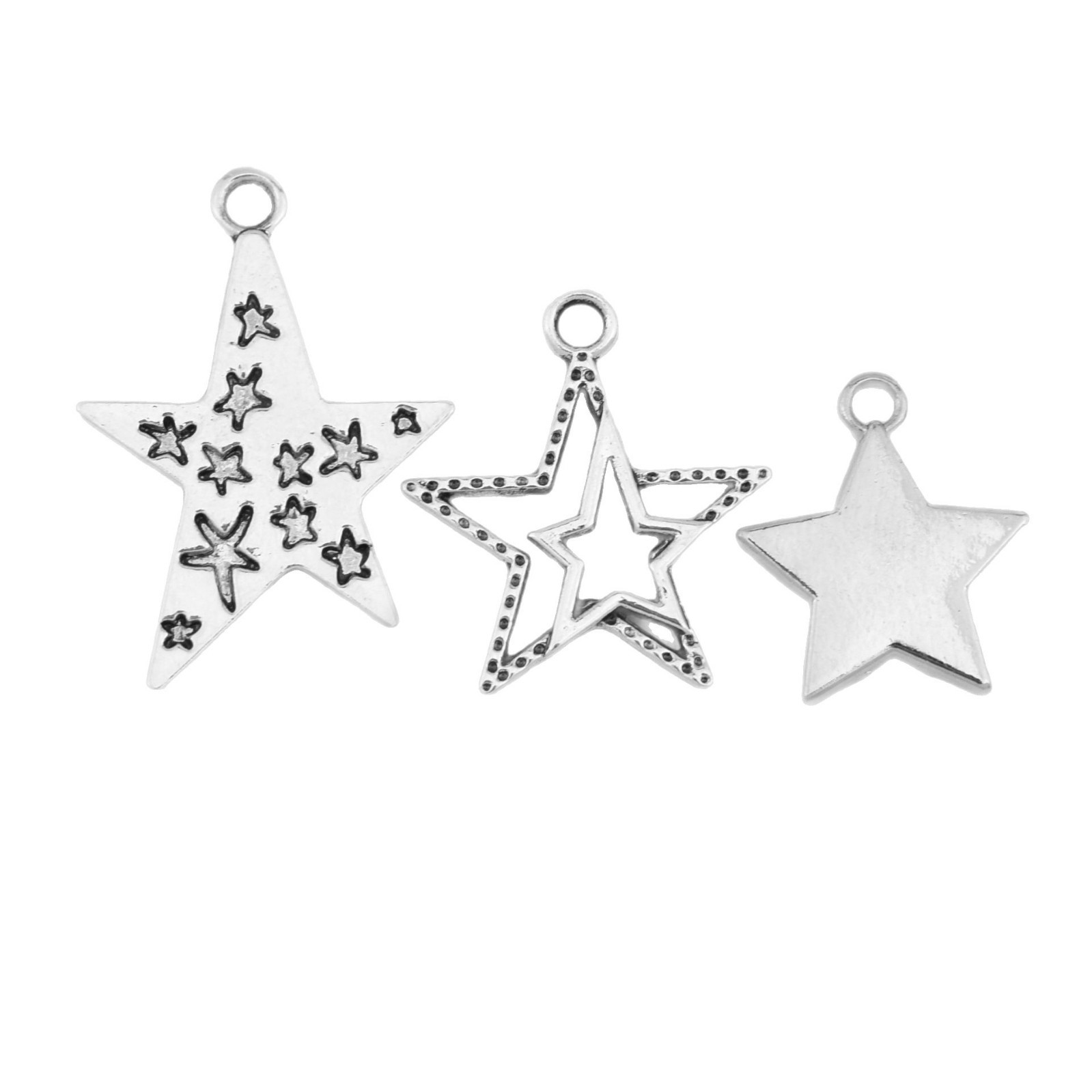 Pendentifs d'étoile en alliage zinc, alliage de zinc, Placage de couleur argentée, DIY, argent, Vendu par PC