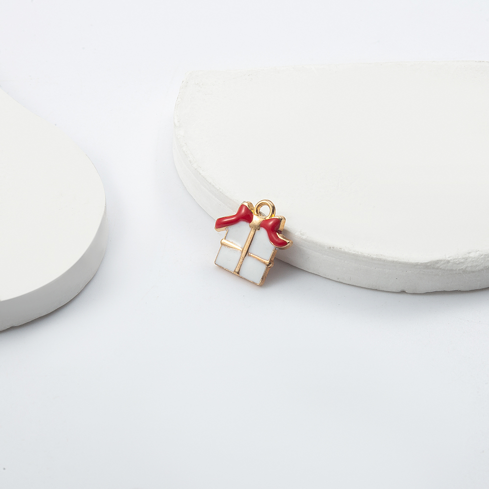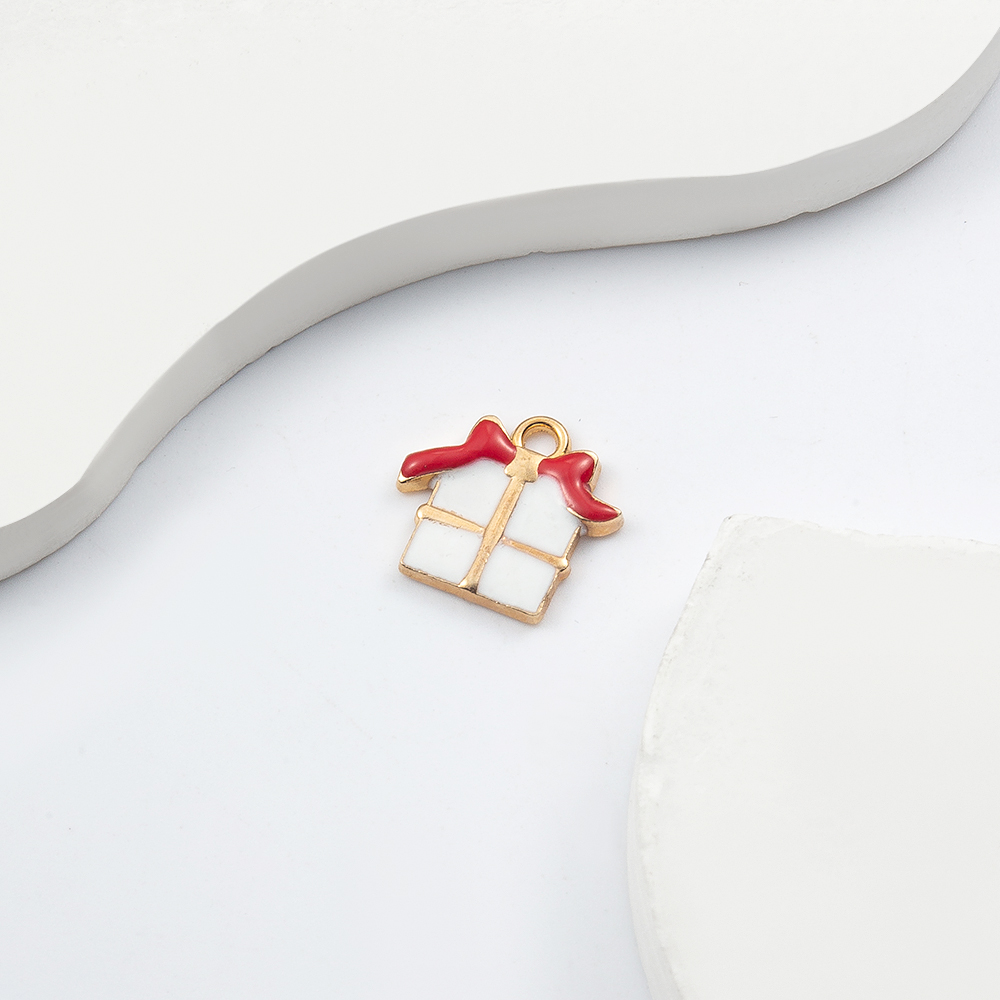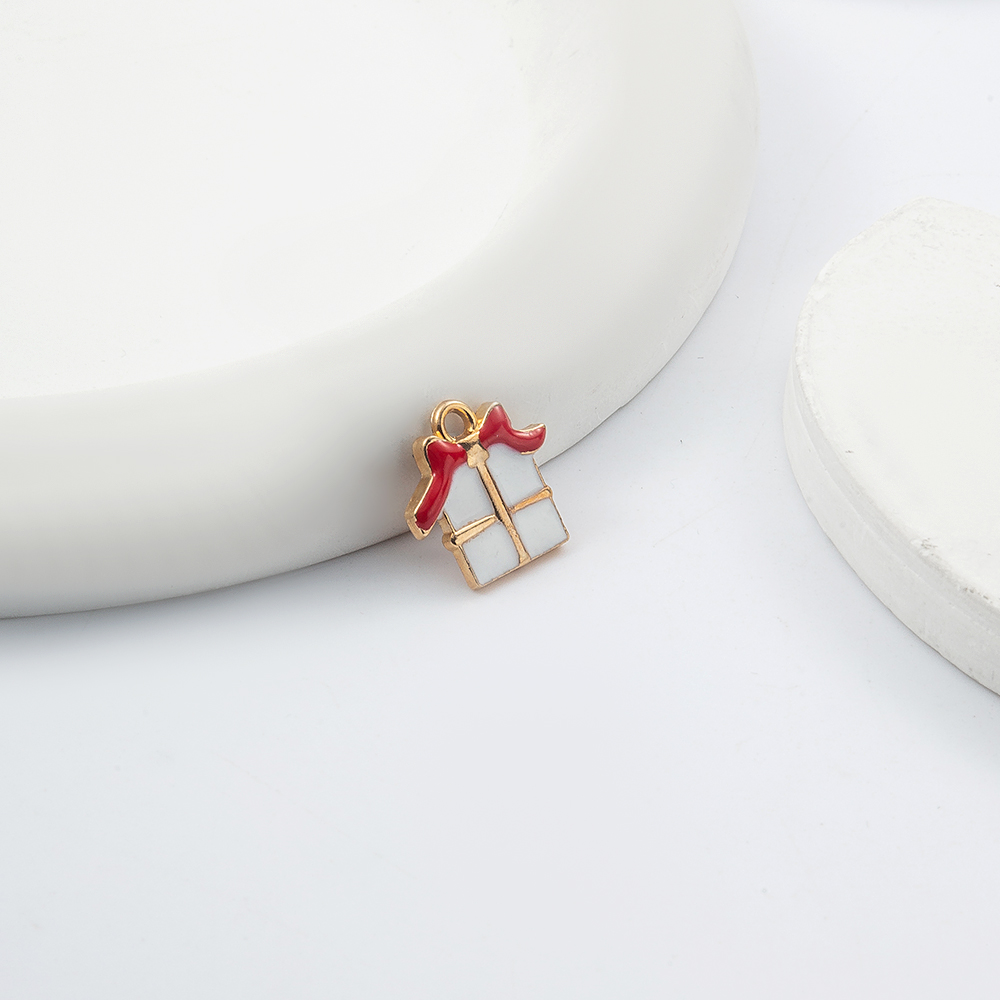 Pendentifs émail, alliage de zinc, En forme de boîte de cadeau, Placage de couleur d'or, DIY, plus de couleurs à choisir, 16x2x15mm, Vendu par PC