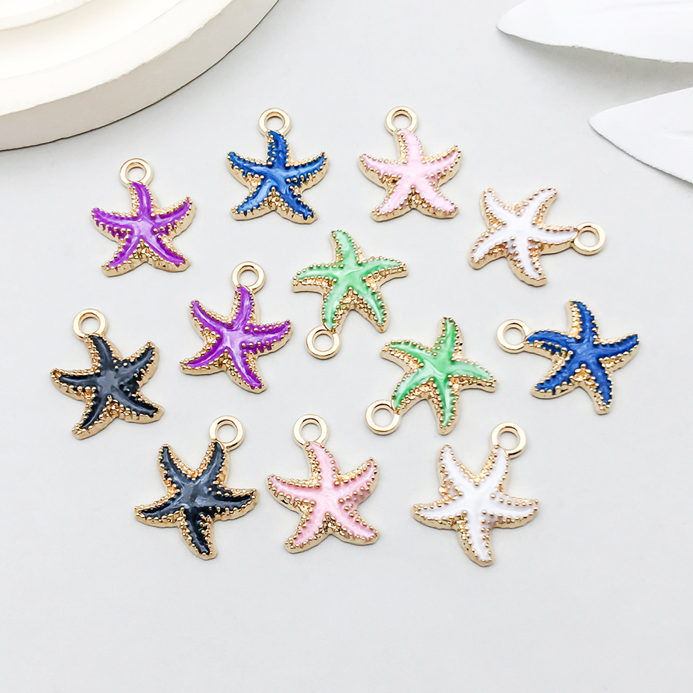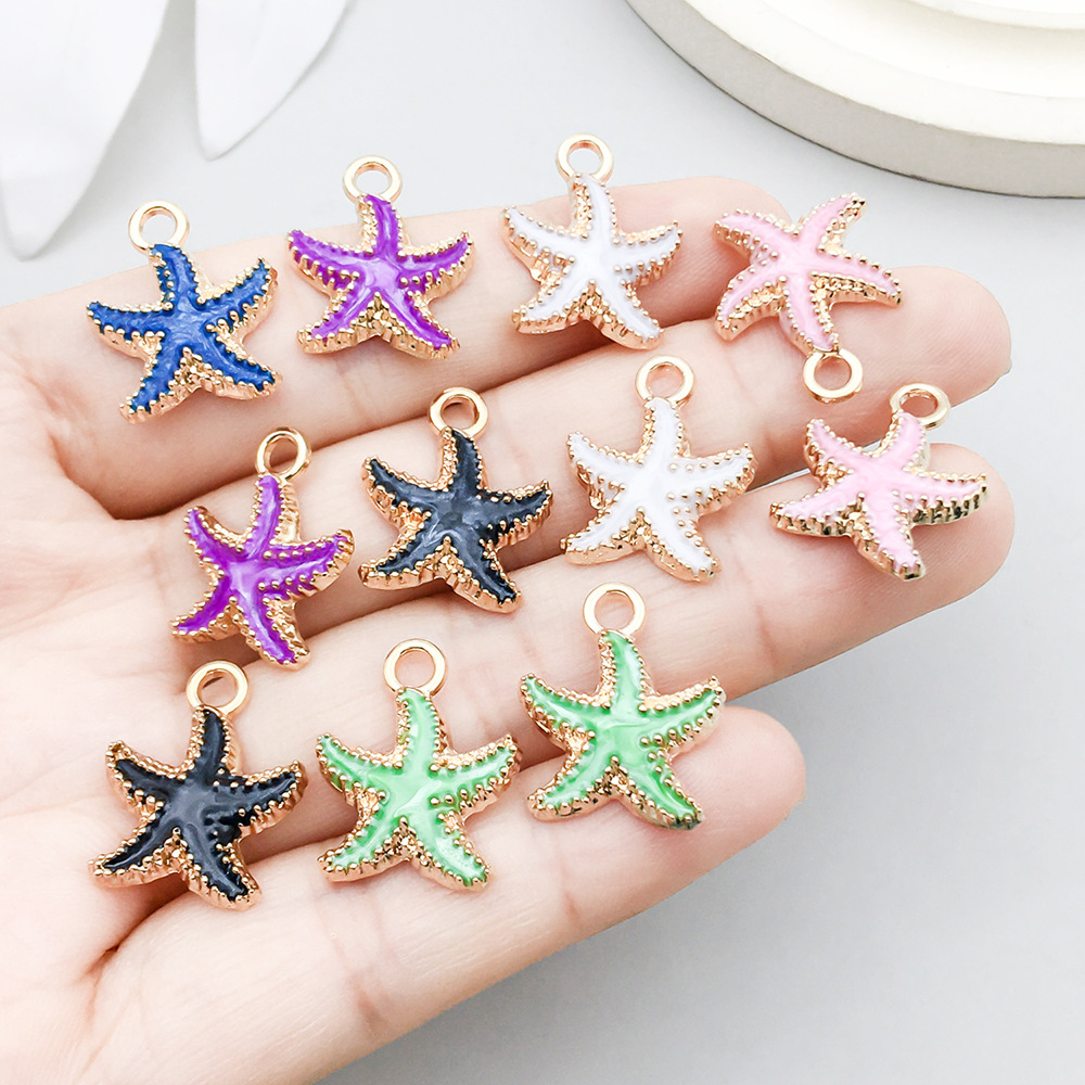 Pendentifs émail, alliage de zinc, étoile de mer, Placage de couleur d'or, DIY, plus de couleurs à choisir, 15x18mm, 100PC/sac, Vendu par sac