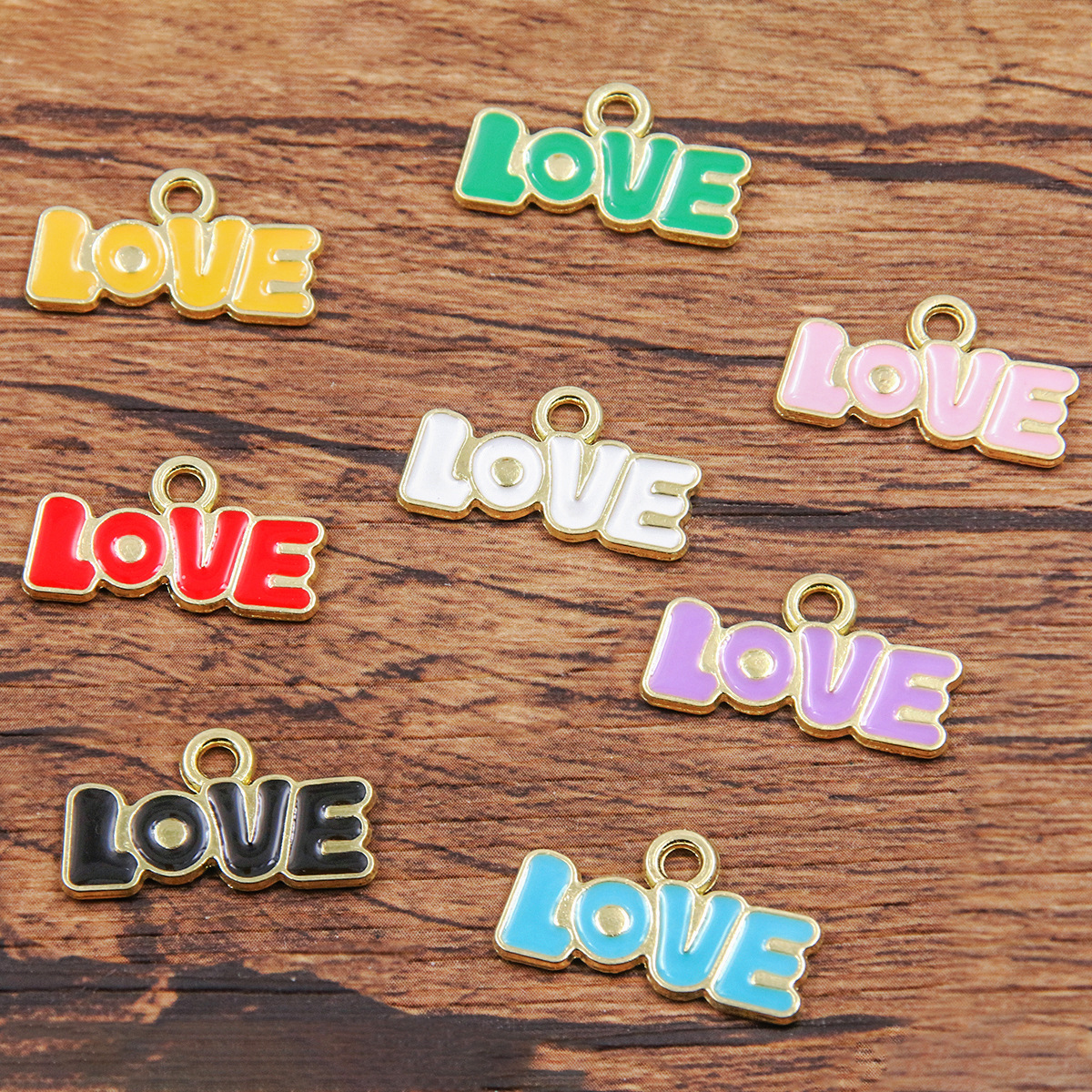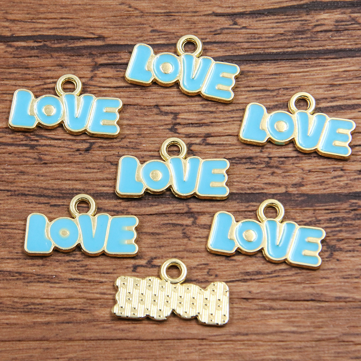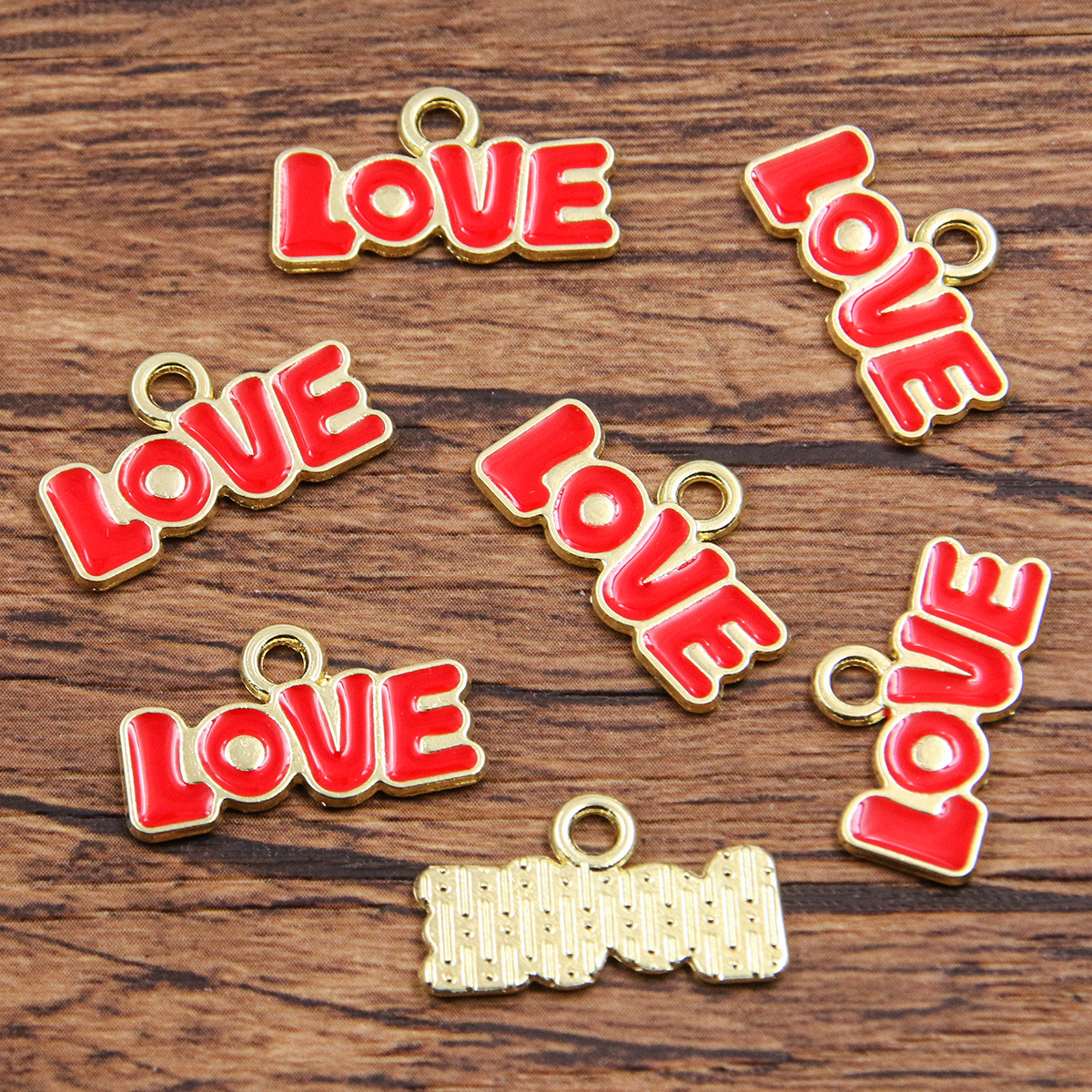 Pendentifs émail, alliage de zinc, Lettre d’alphabet, Placage de couleur d'or, DIY, plus de couleurs à choisir, 20x11mm, Environ 100PC/sac, Vendu par sac