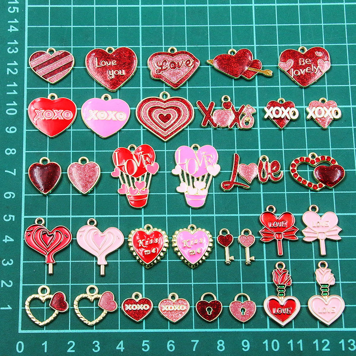Pendentifs émail, alliage de zinc, coeur, Placage de couleur d'or, DIY & normes différentes pour le choix, plus de couleurs à choisir, Environ 100PC/sac, Vendu par sac
