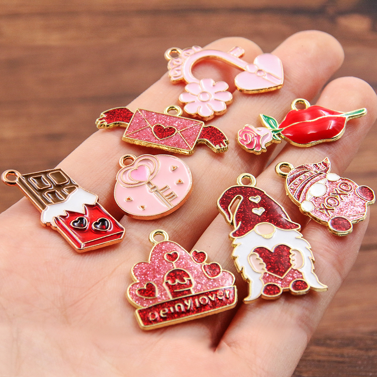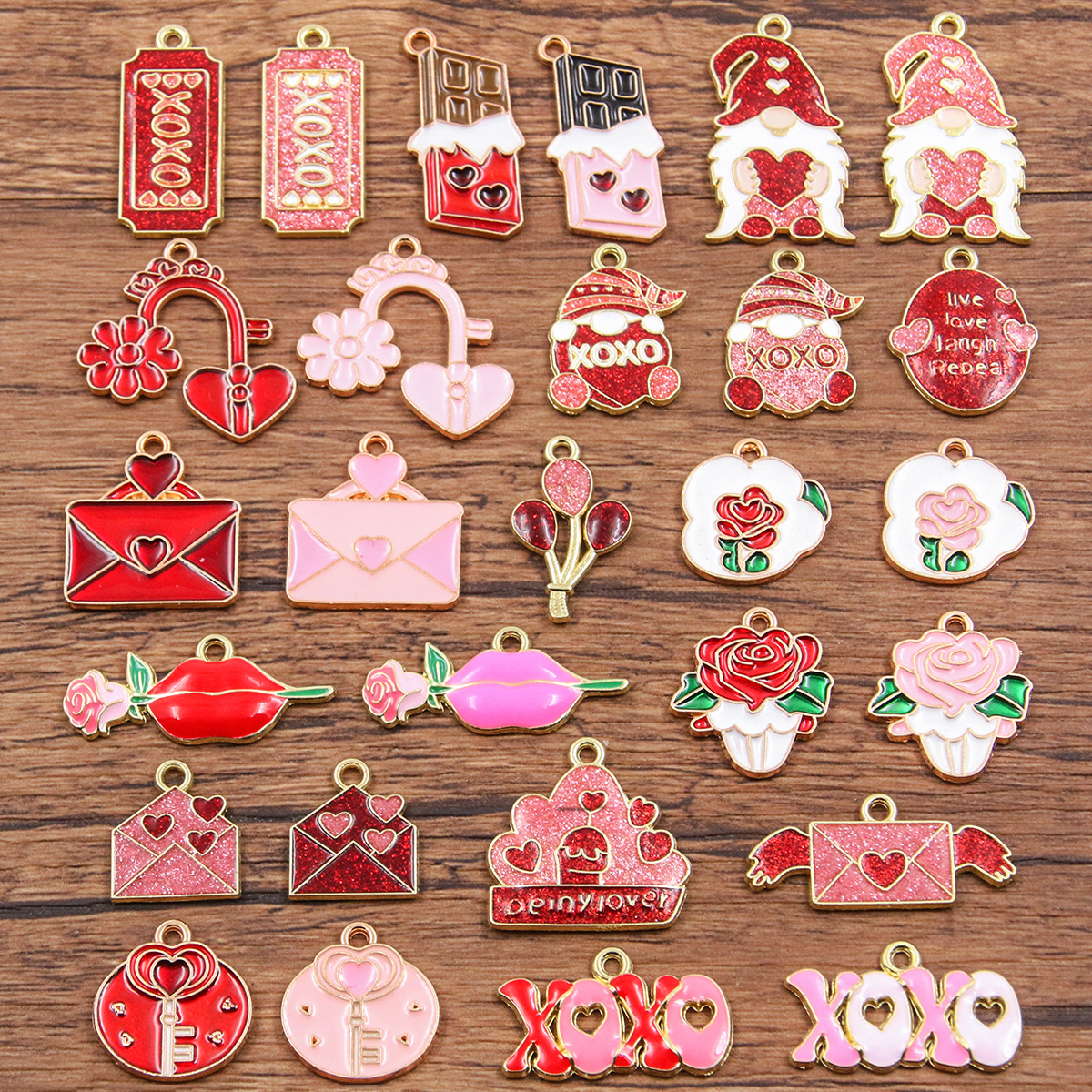 Pendentifs émail, alliage de zinc, Placage de couleur d'or, Forme différente pour le choix & DIY, plus de couleurs à choisir, Environ 100PC/sac, Vendu par sac