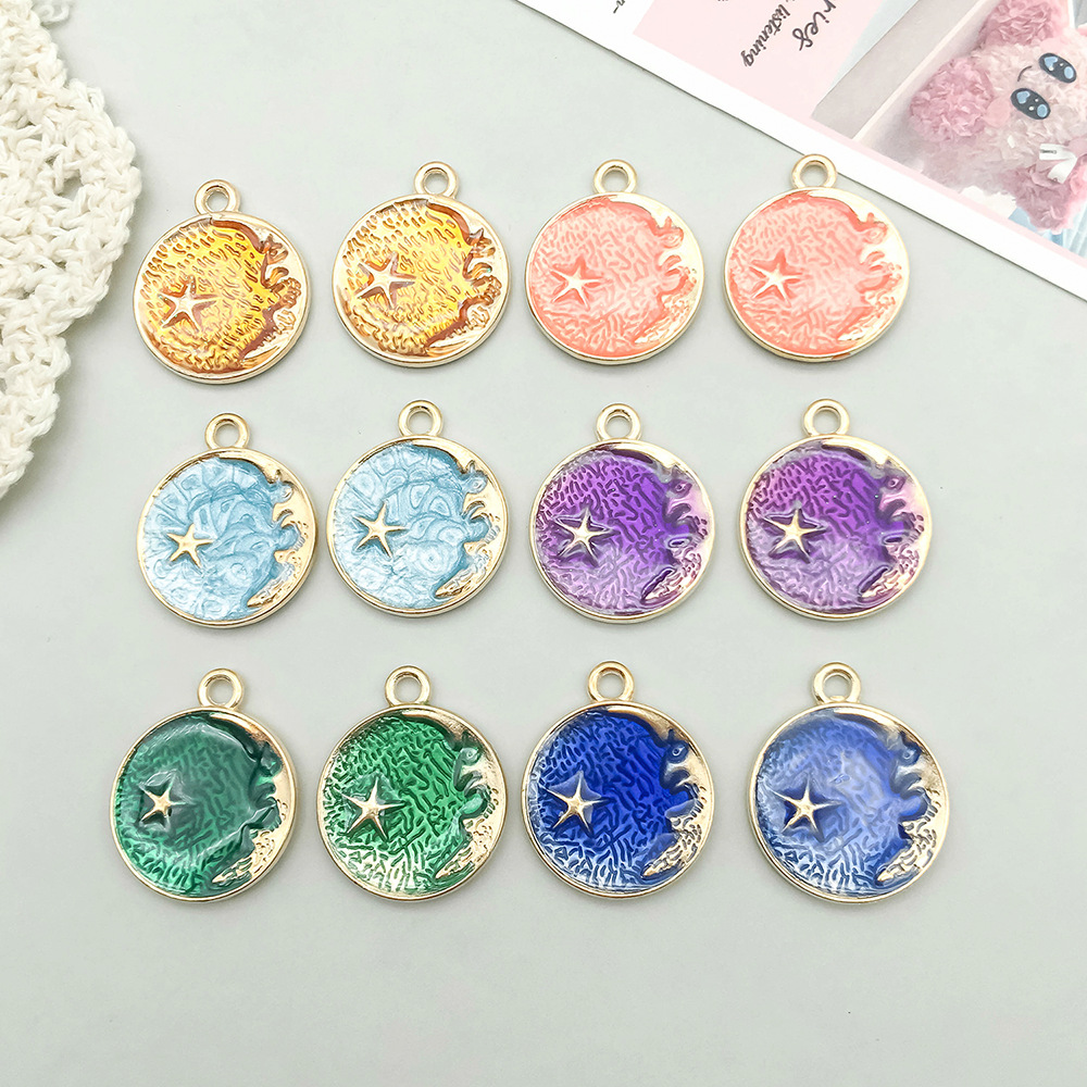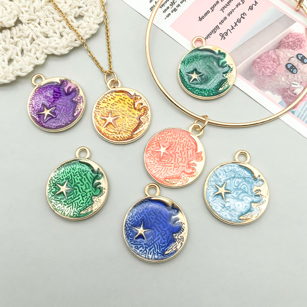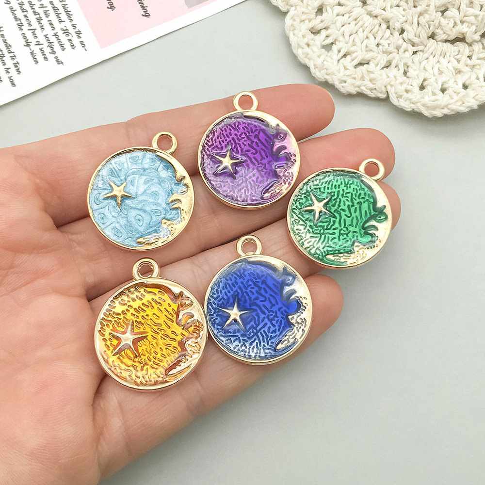 Pendentifs émail, alliage de zinc, Rond, Placage de couleur d'or, DIY & modèles différents pour le choix, plus de couleurs à choisir Vendu par PC