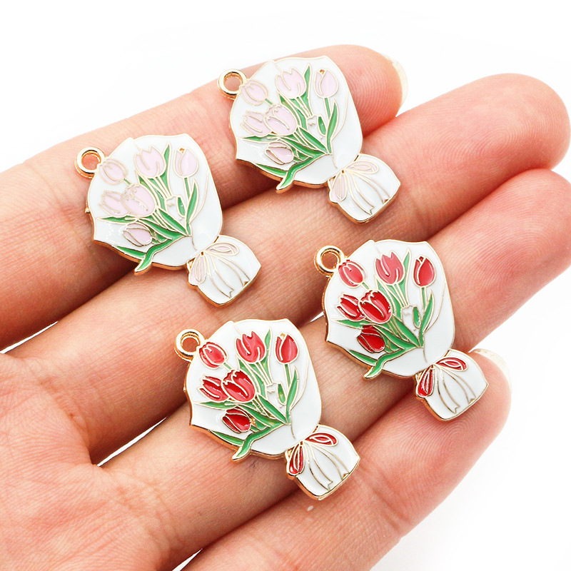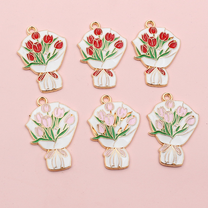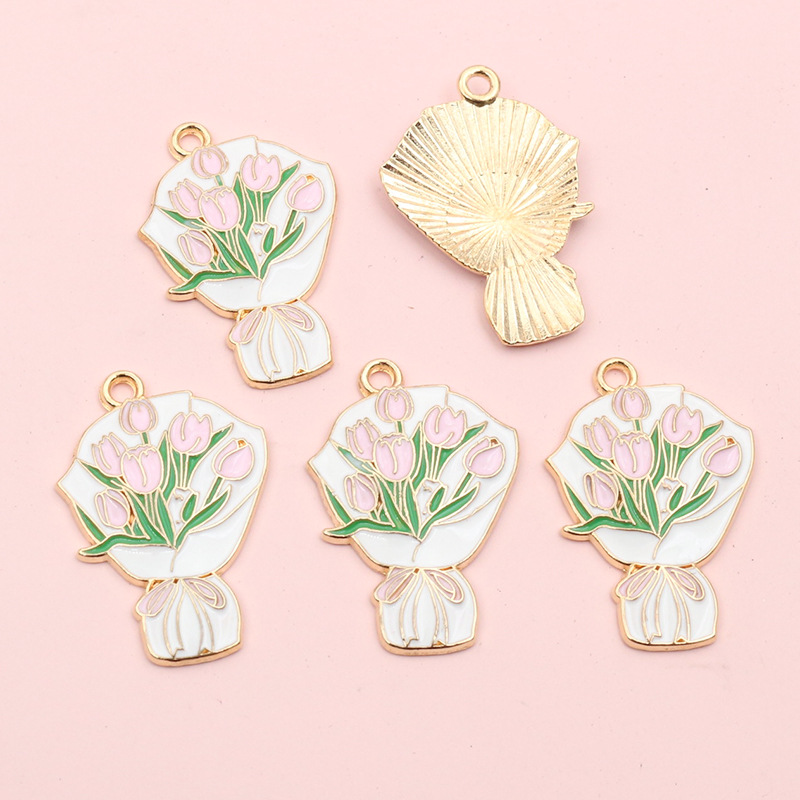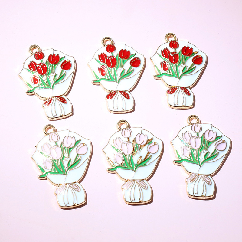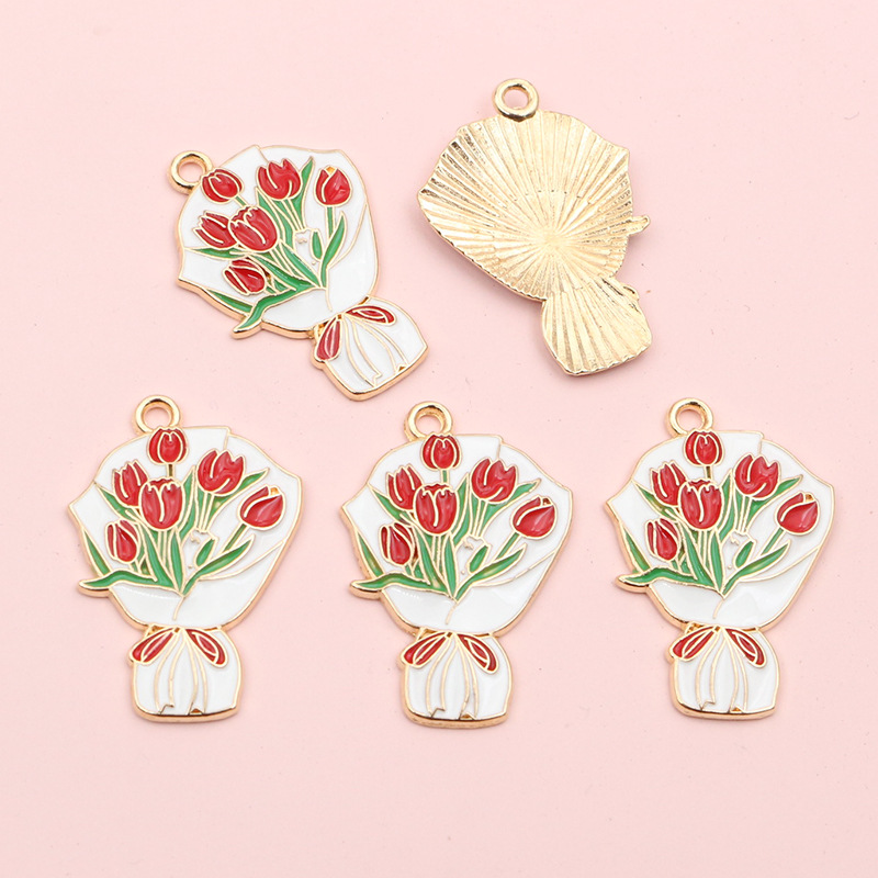 Pendentifs émail, alliage de zinc, Bouquet, DIY, plus de couleurs à choisir, 27x18mm, 100PC/sac, Vendu par sac