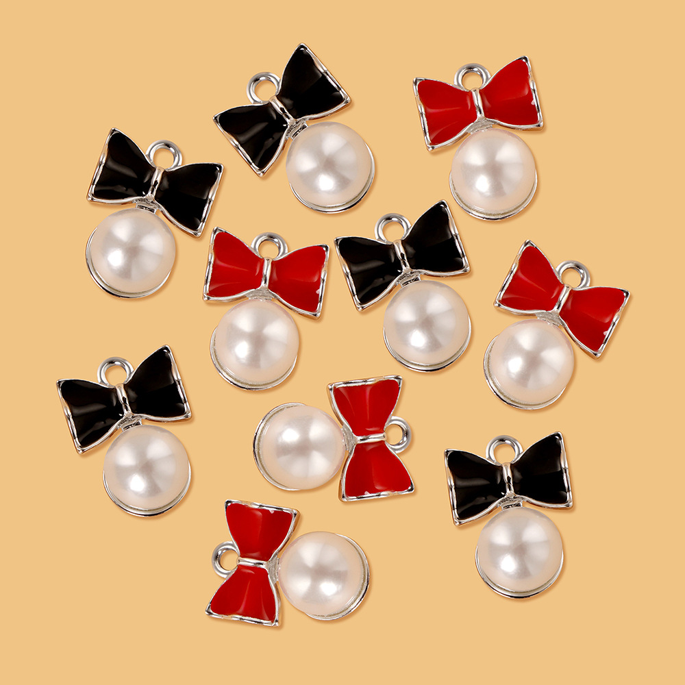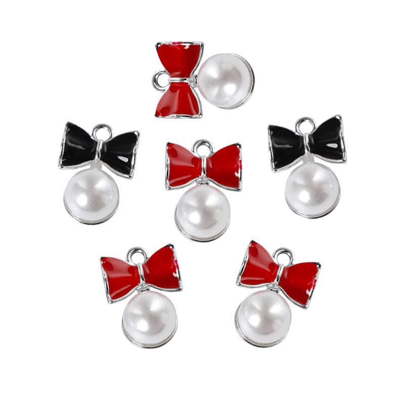 Pendentifs émail, alliage de zinc, avec perle de plastique, Noeud papillon, Placage, DIY, plus de couleurs à choisir, 100PC/sac, Vendu par sac