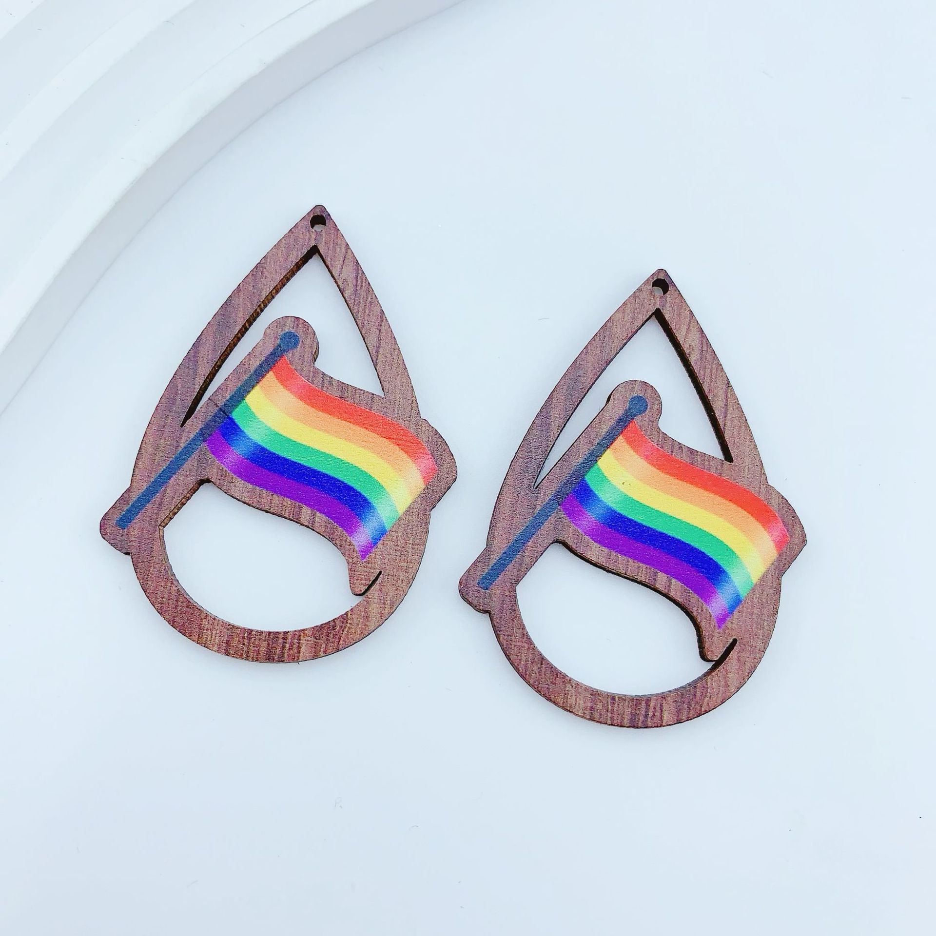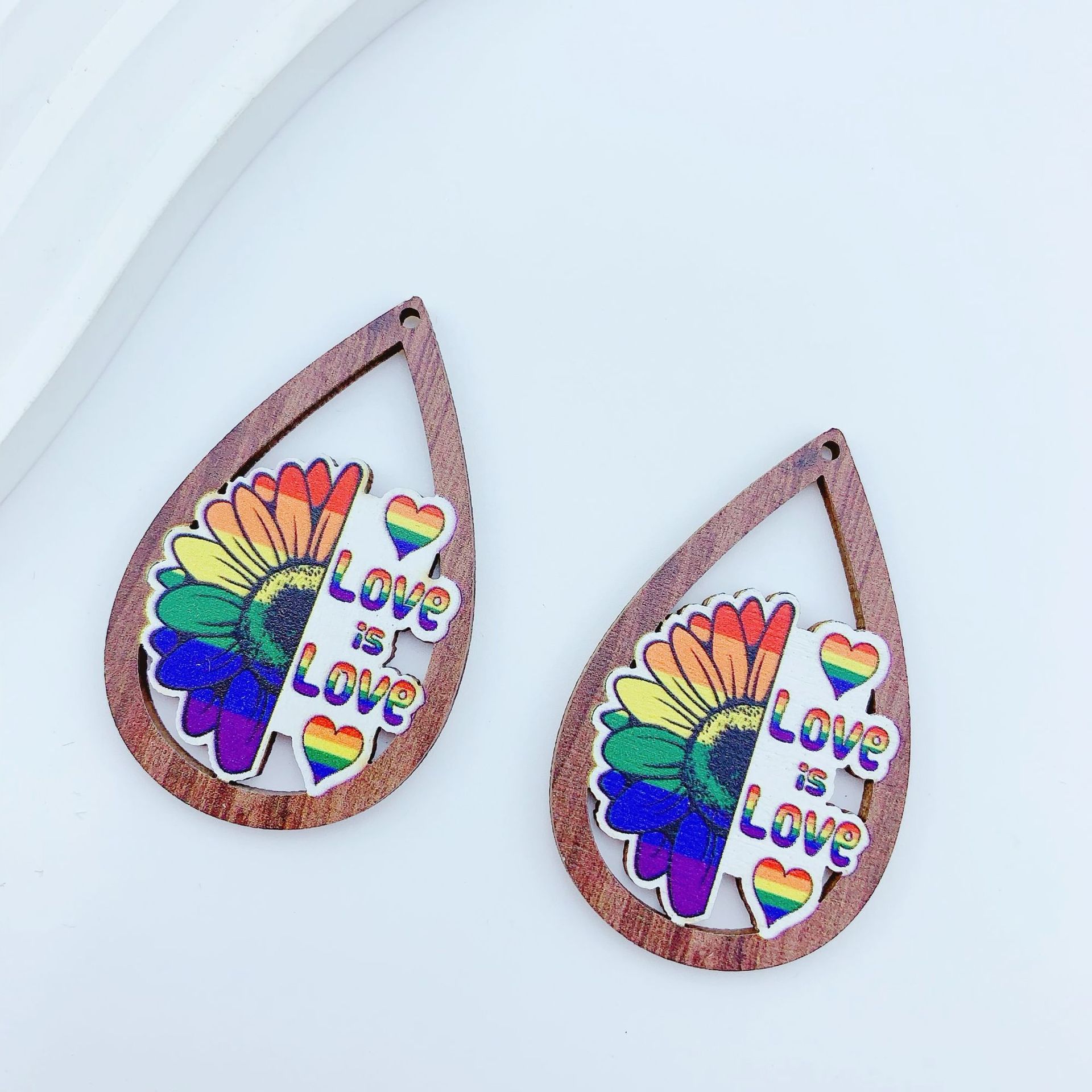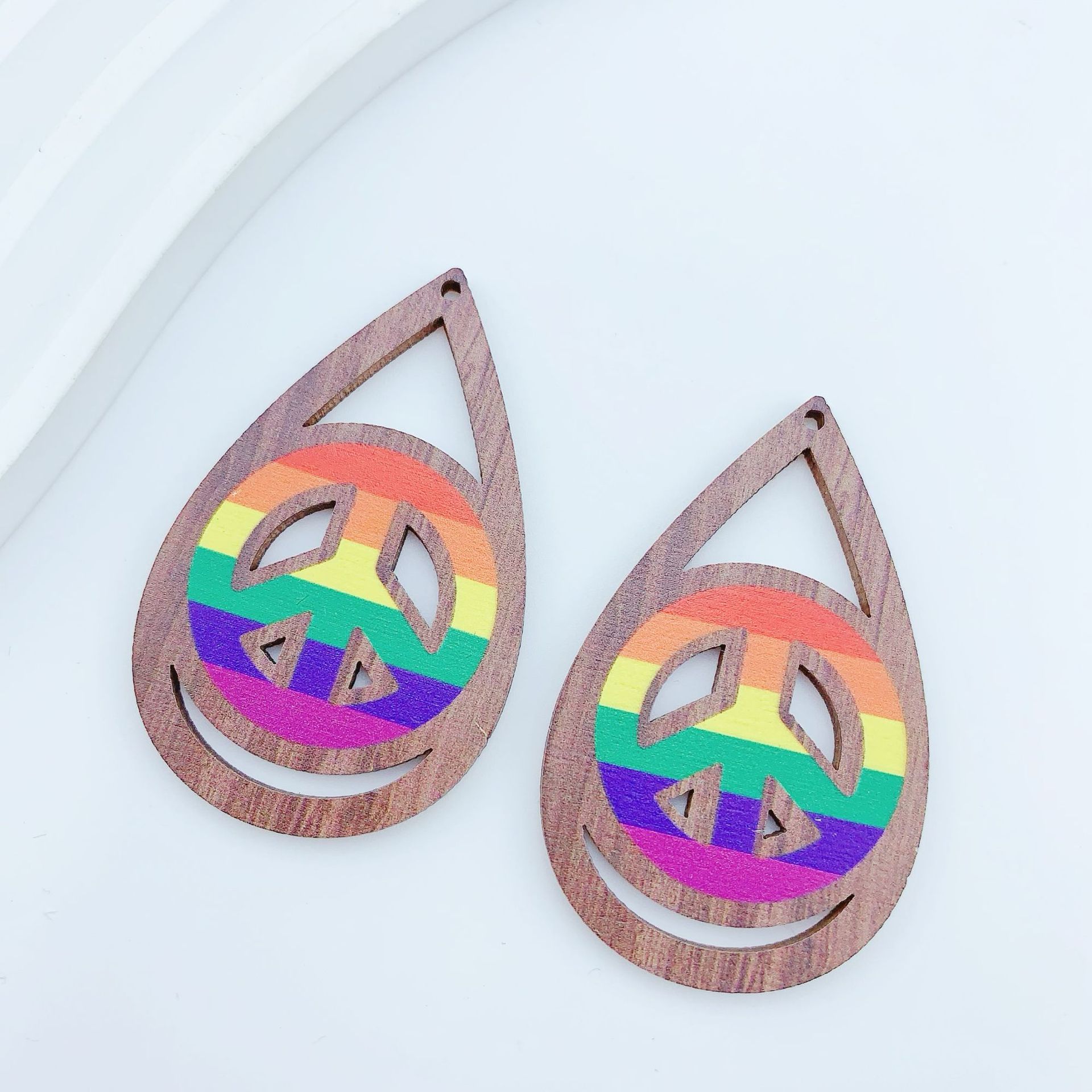 Pendentifs en Impression bois, larme, coloré, DIY, plus de couleurs à choisir, 34x55mm, Environ 100PC/sac, Vendu par sac