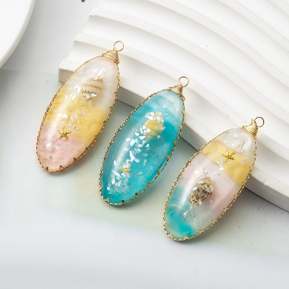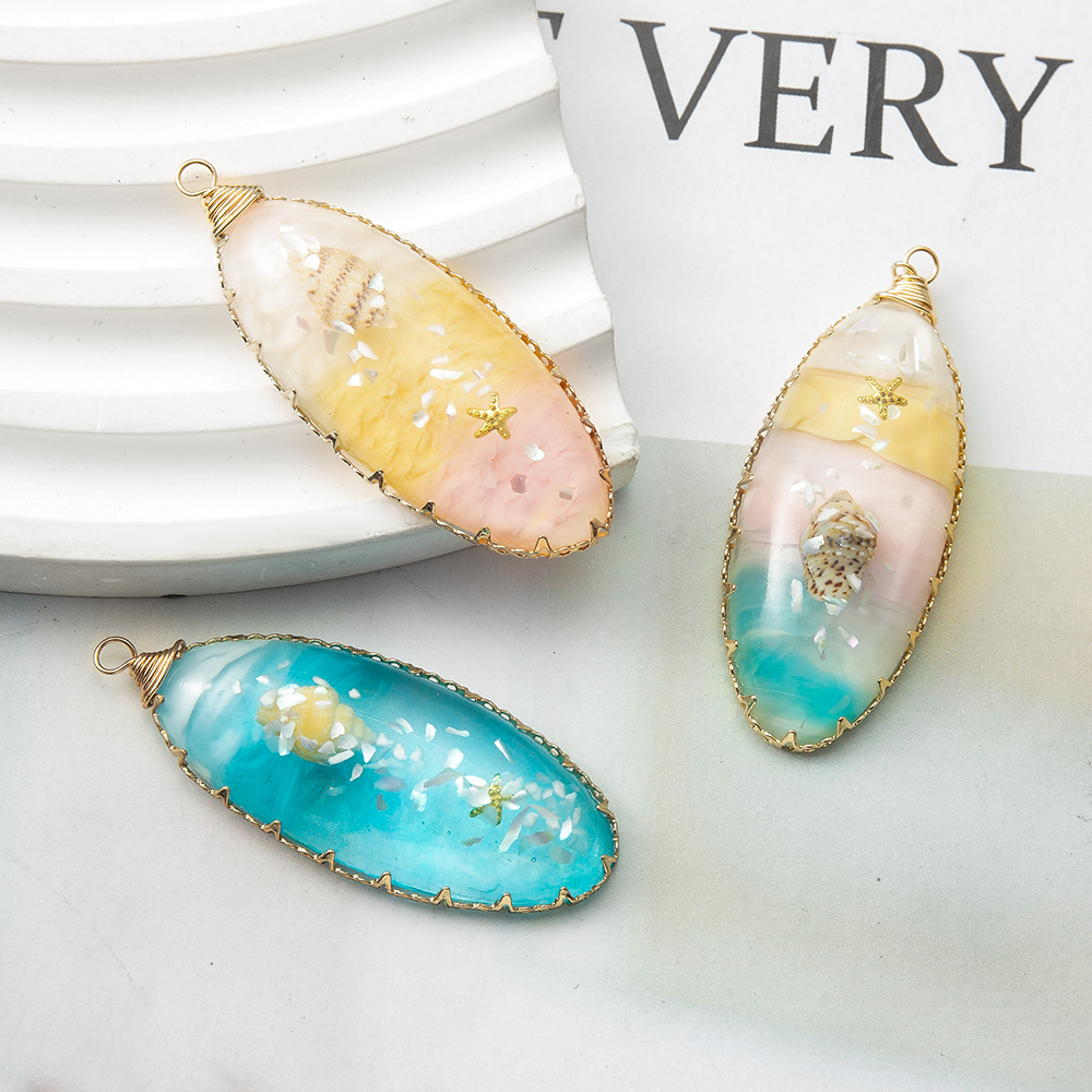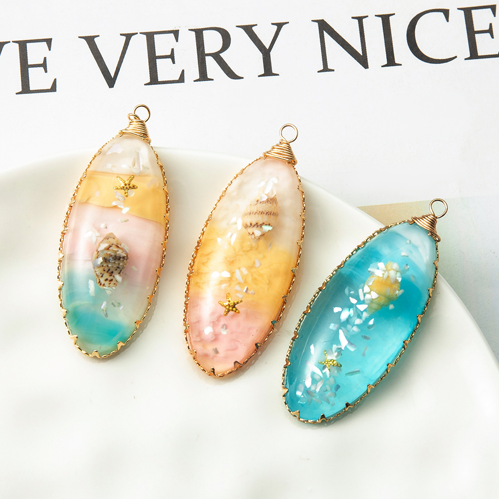 Pendentifs en Résine laiton , avec Fleurs séchées & résine, Placage, DIY & autocollant époxyde, plus de couleurs à choisir, 20.5x7.7x52.3mm, Vendu par PC
