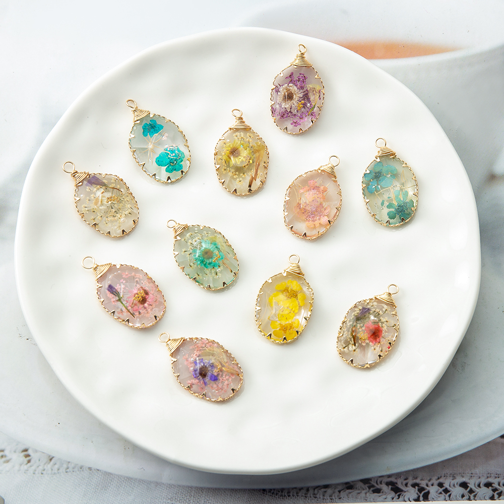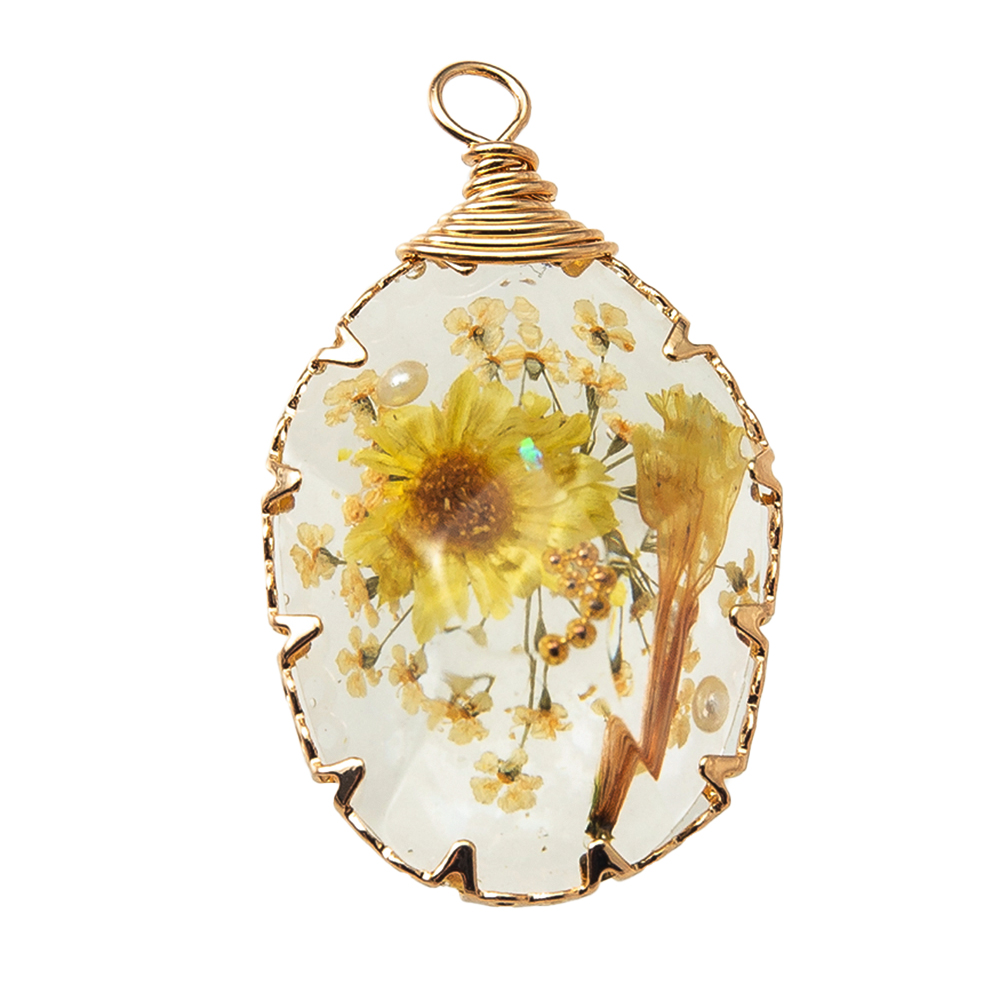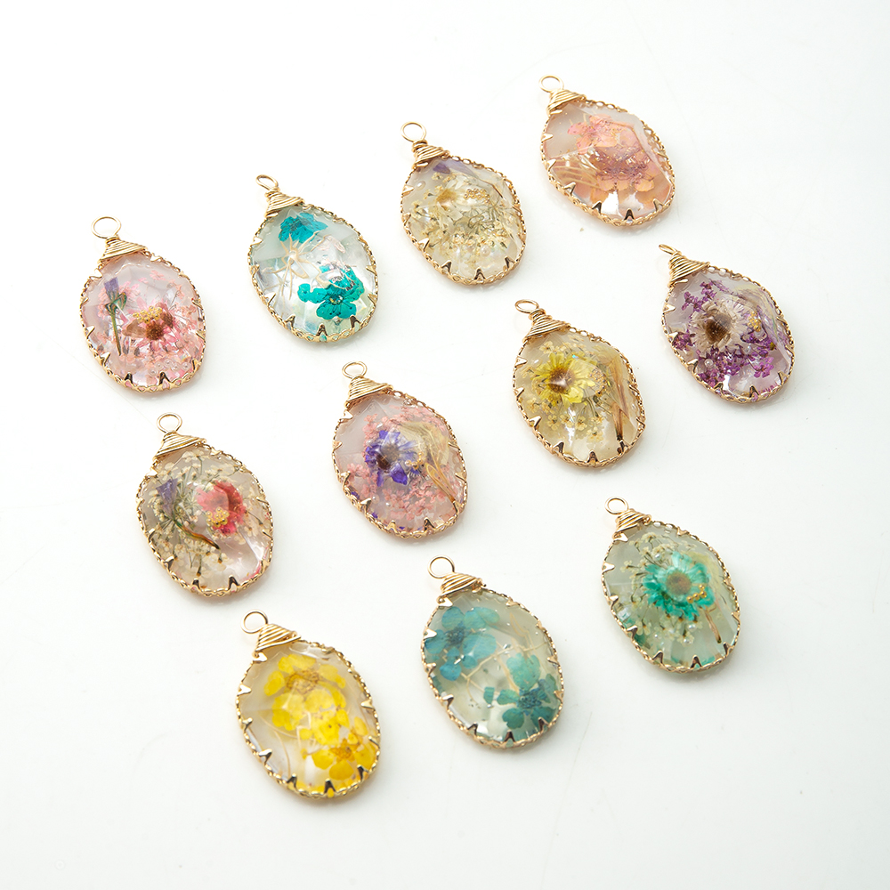 Pendentifs en Résine laiton , avec Fleurs séchées & résine, larme, Placage, DIY & autocollant époxyde, plus de couleurs à choisir, 18.39x8.36x30.36mm, Vendu par PC