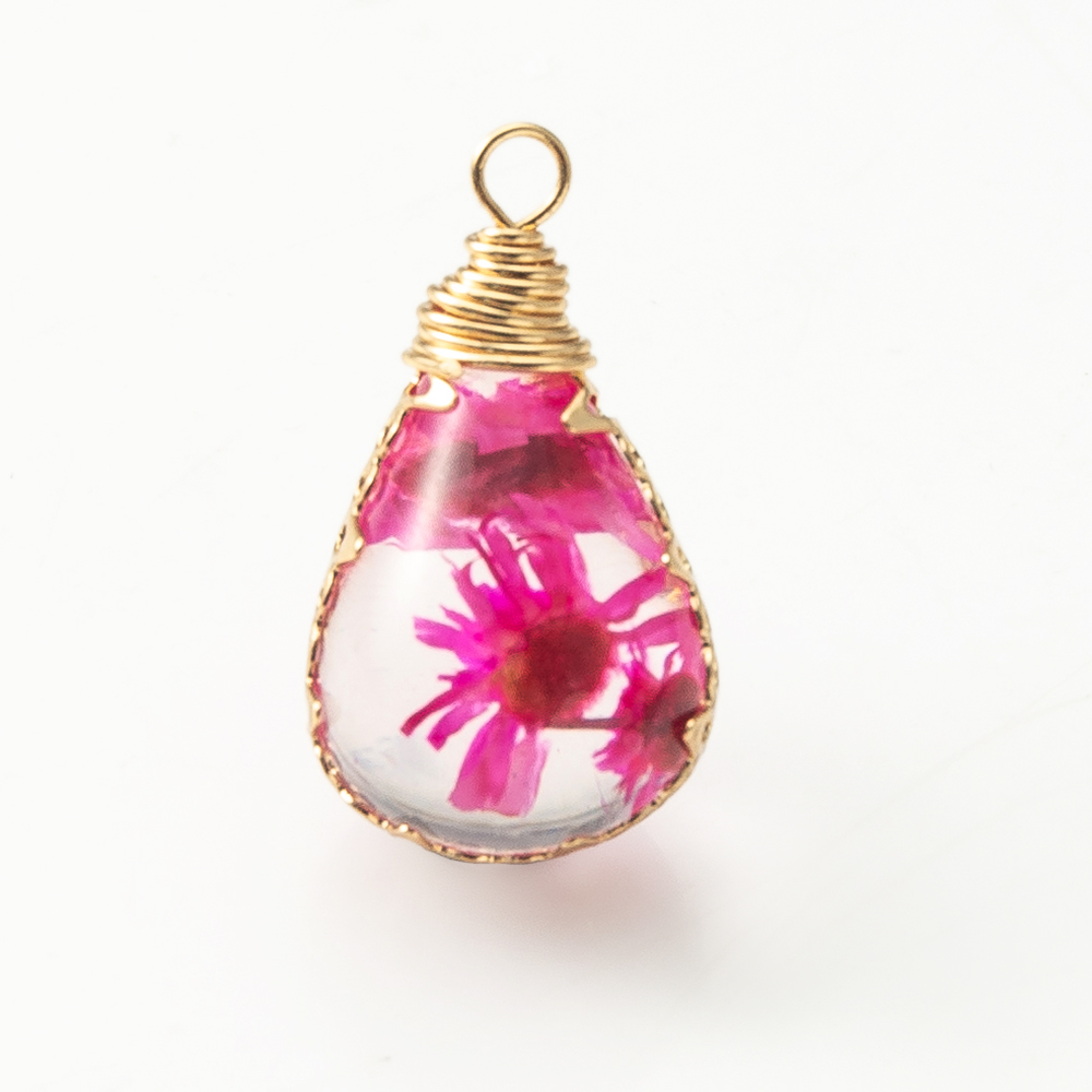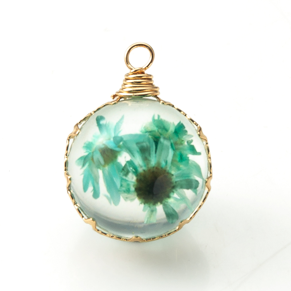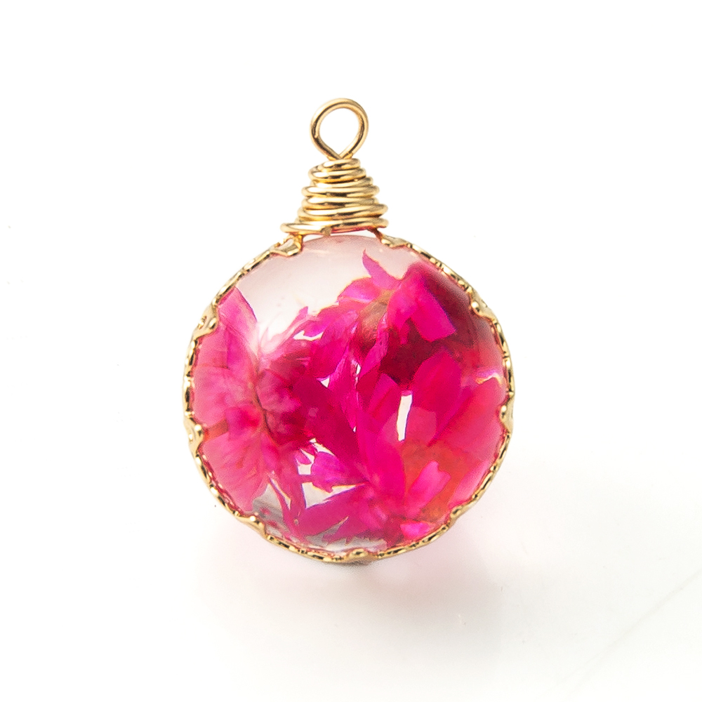 Pendentifs en Résine laiton , avec Fleurs séchées & résine, Placage, DIY & autocollant époxyde, plus de couleurs à choisir, 16.36x15.77x22mm, Vendu par PC