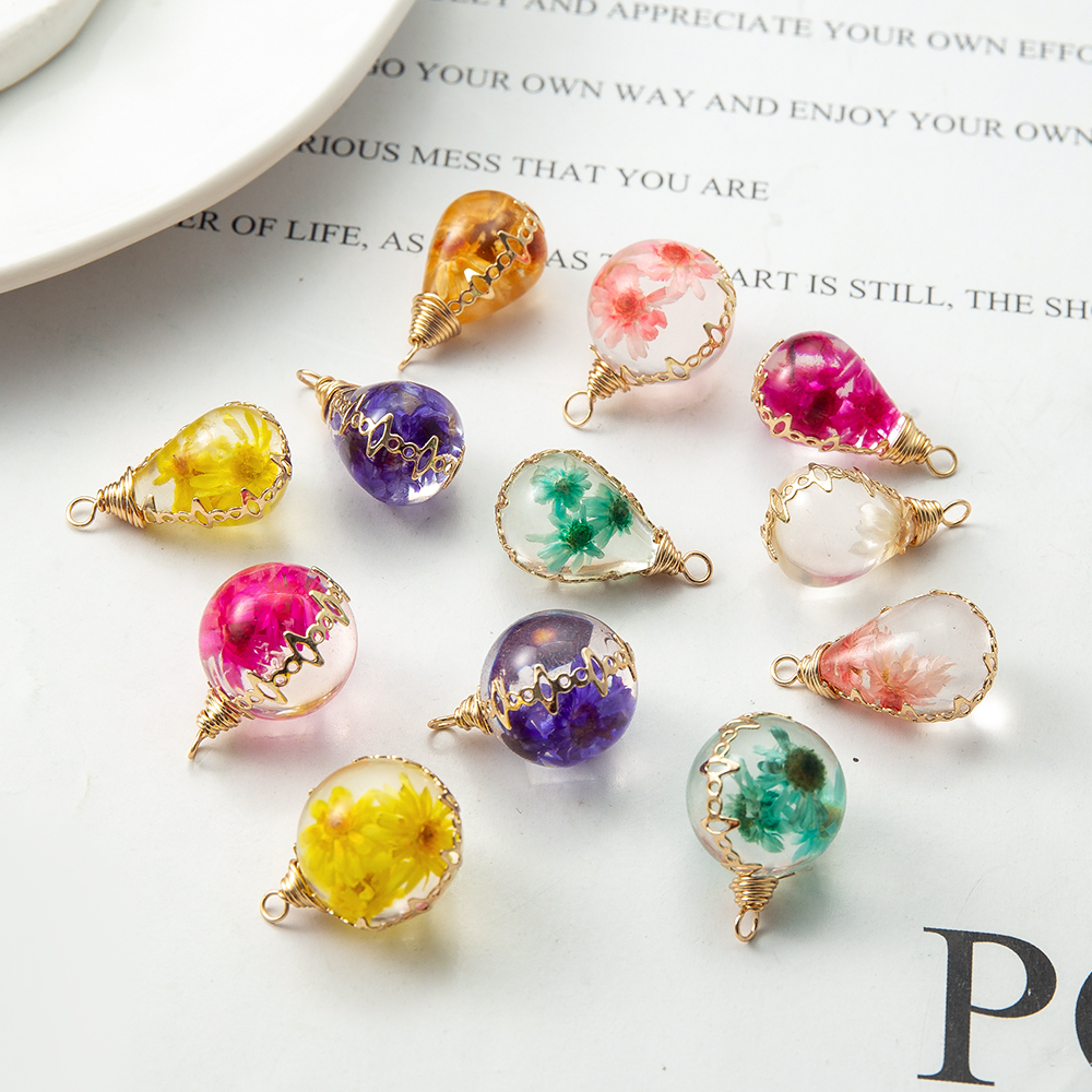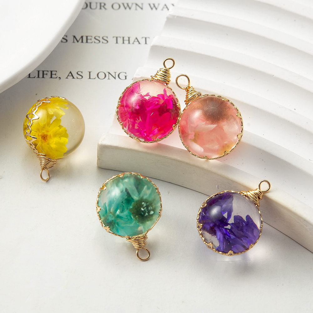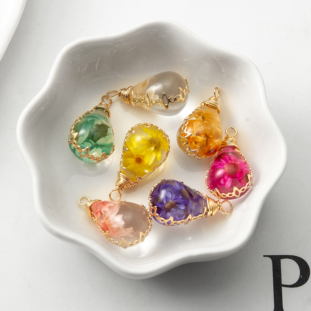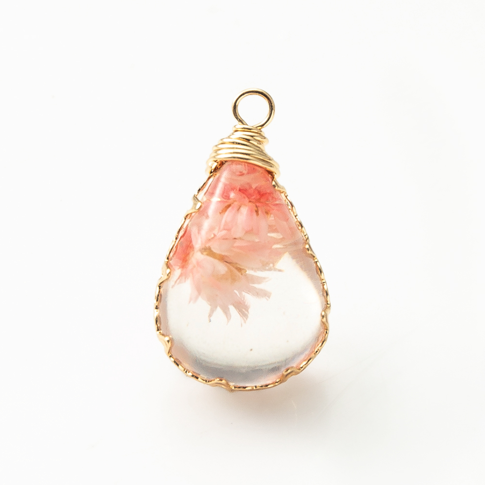 Pendentifs en Résine laiton , avec Fleurs séchées & résine, Placage, DIY & autocollant époxyde, plus de couleurs à choisir, 16.36x15.77x22mm, Vendu par PC
