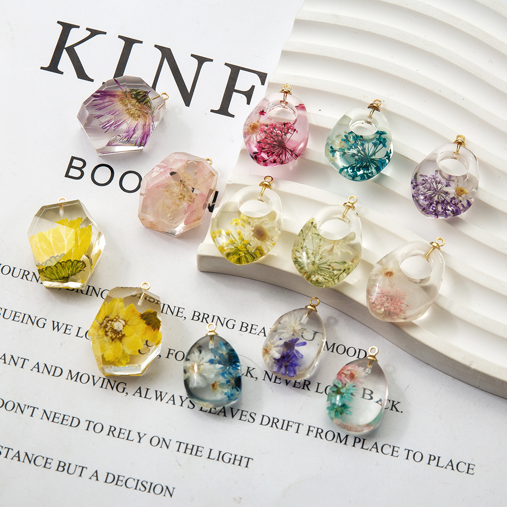 Pendentifs en Résine laiton , avec Fleurs séchées & laiton, DIY, plus de couleurs à choisir, 20.6x15.5x27.3mm, Vendu par PC