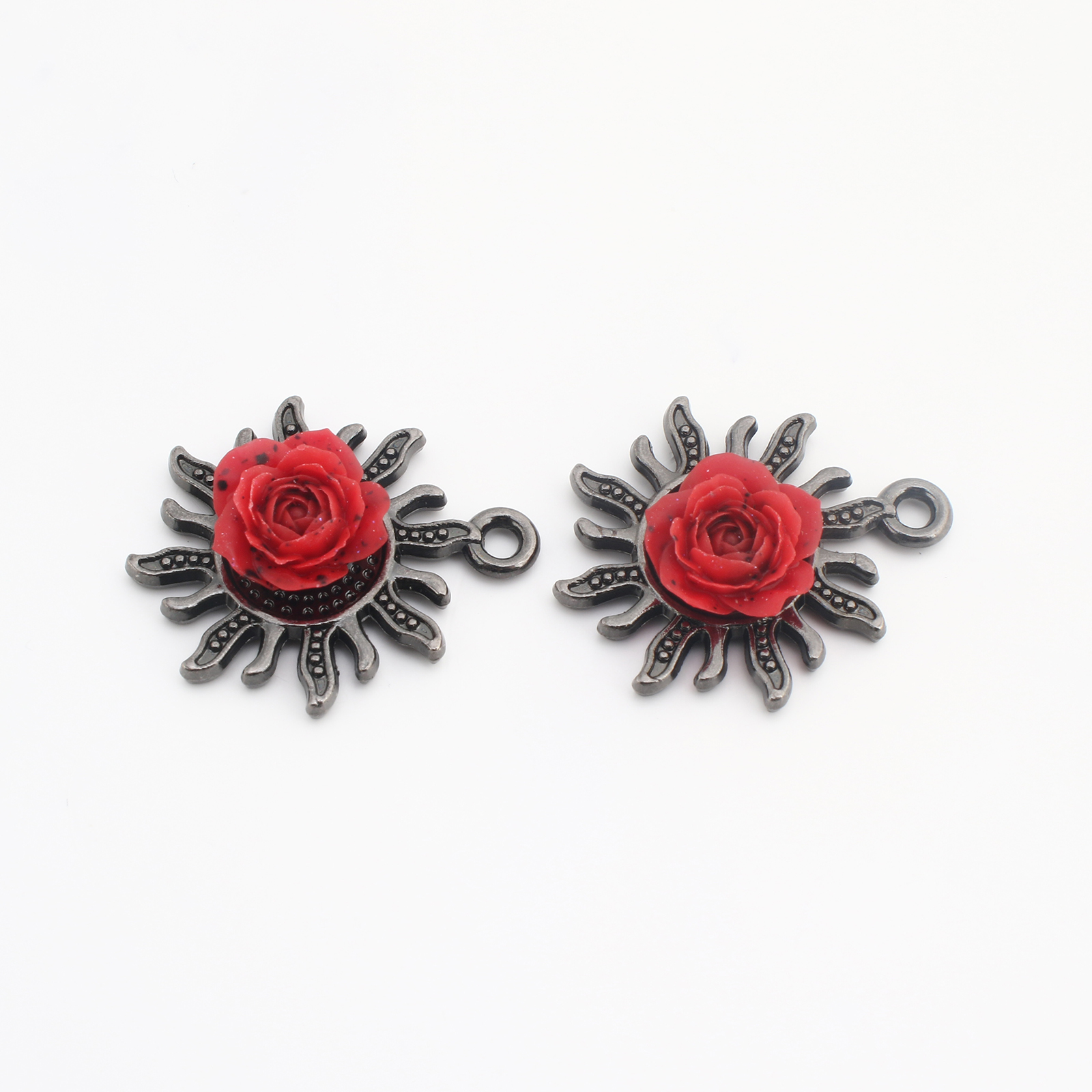 Pendentifs en Résine laiton , avec résine, fleur, Placage, DIY, couleurs mélangées, 100PC/sac, Vendu par sac