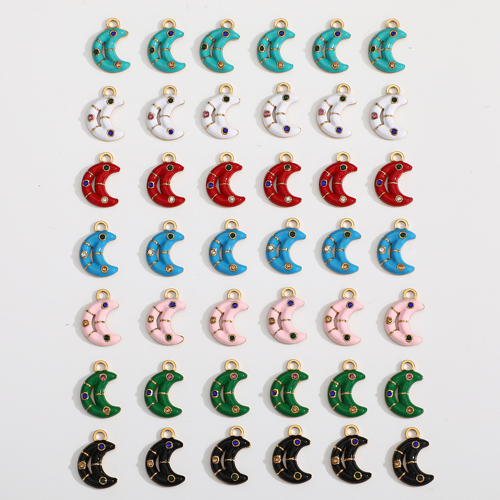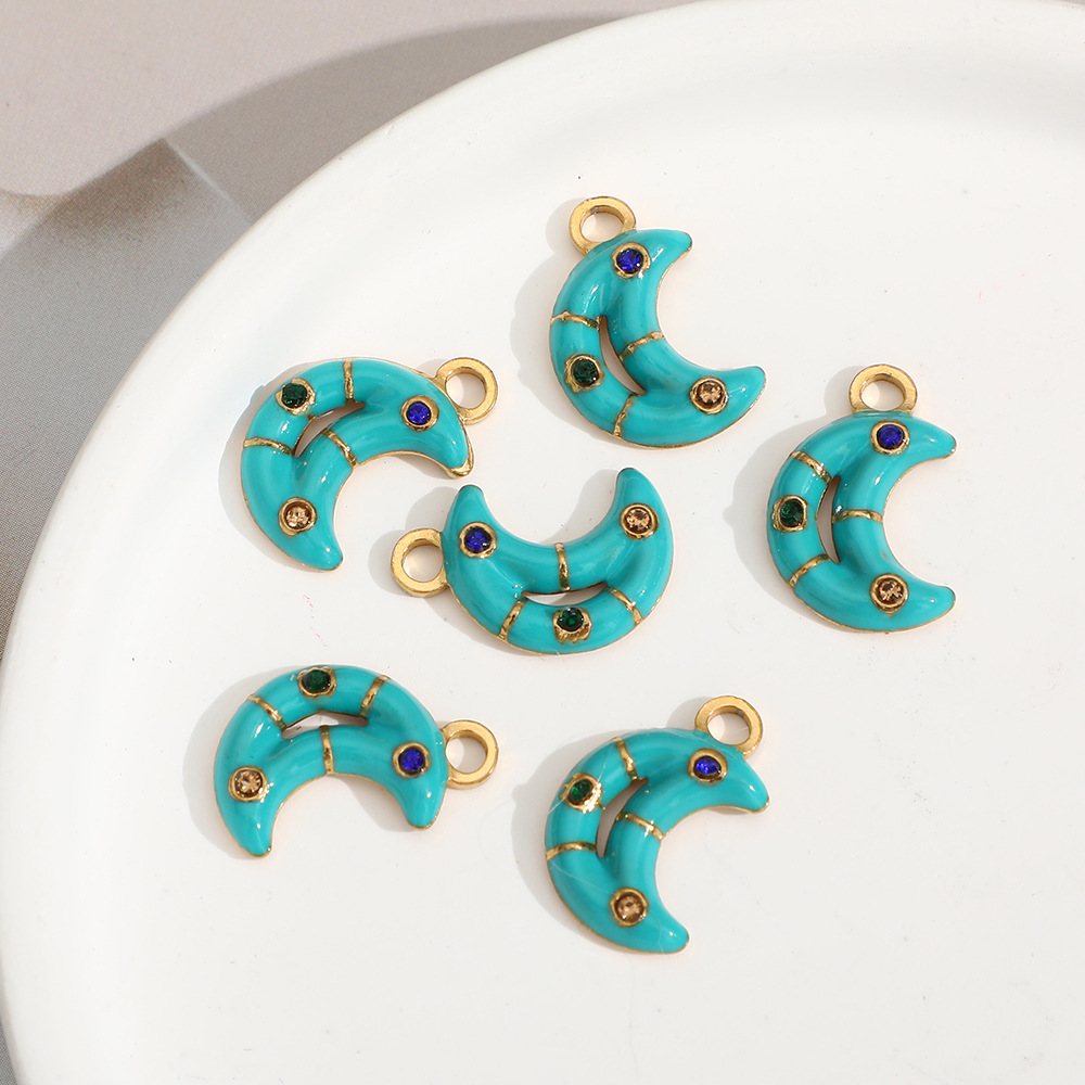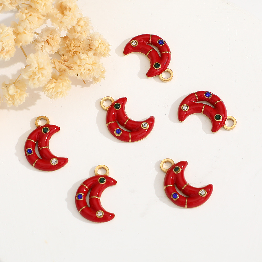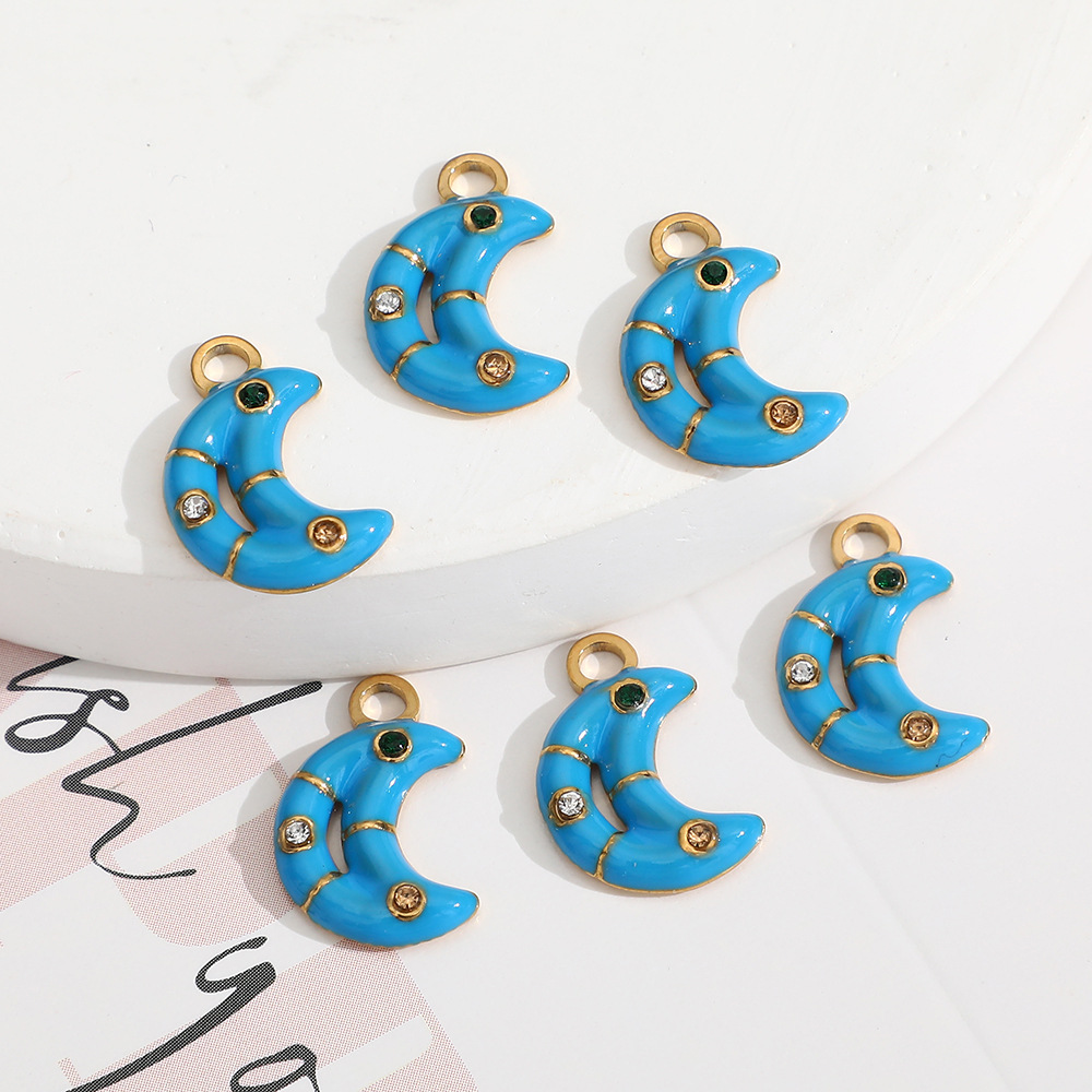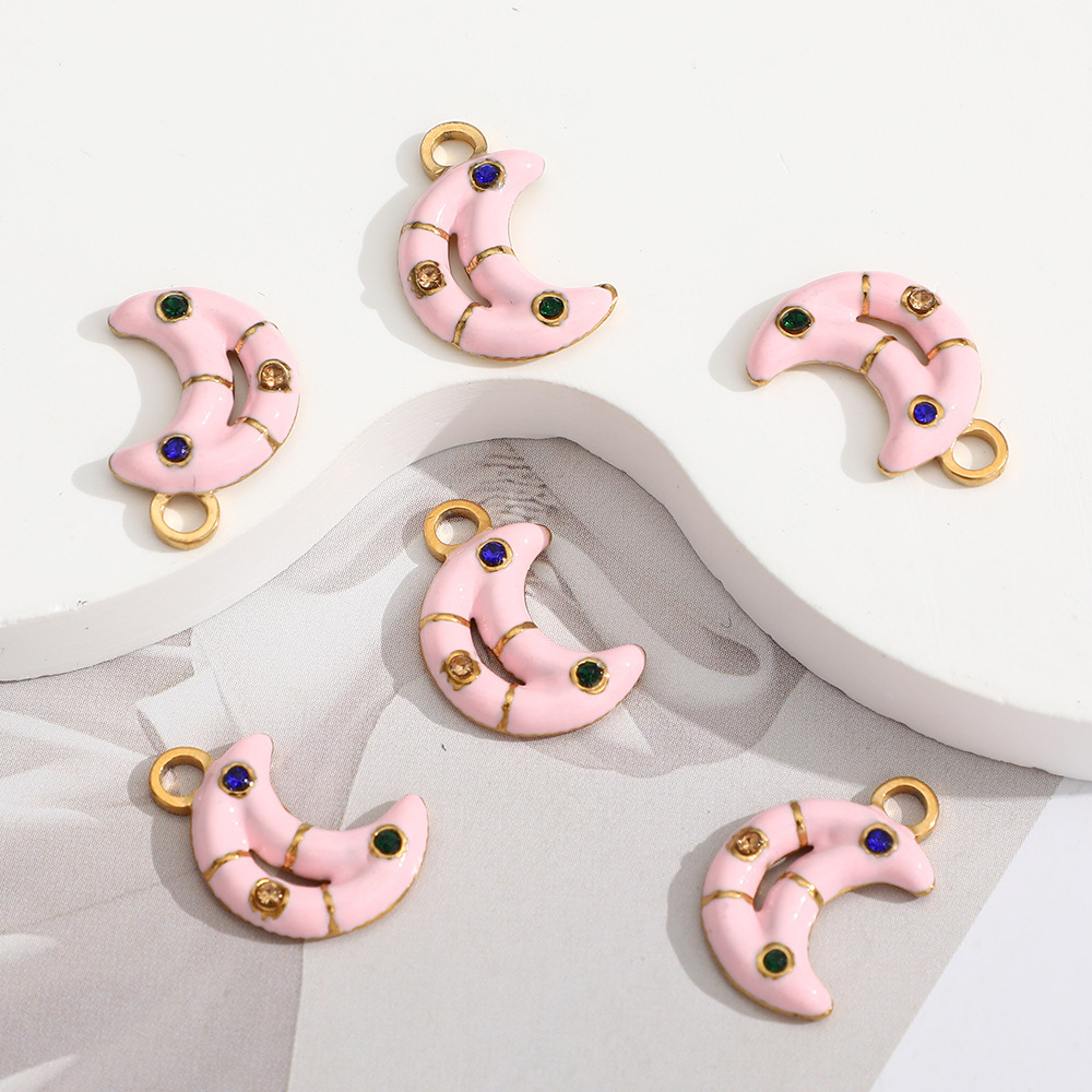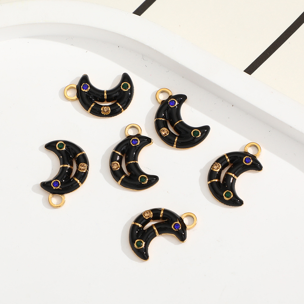 Pendentifs en acier inoxydable émail, Acier inoxydable 304, lune, Placage de couleur d'or, DIY & avec strass, plus de couleurs à choisir, Vendu par PC