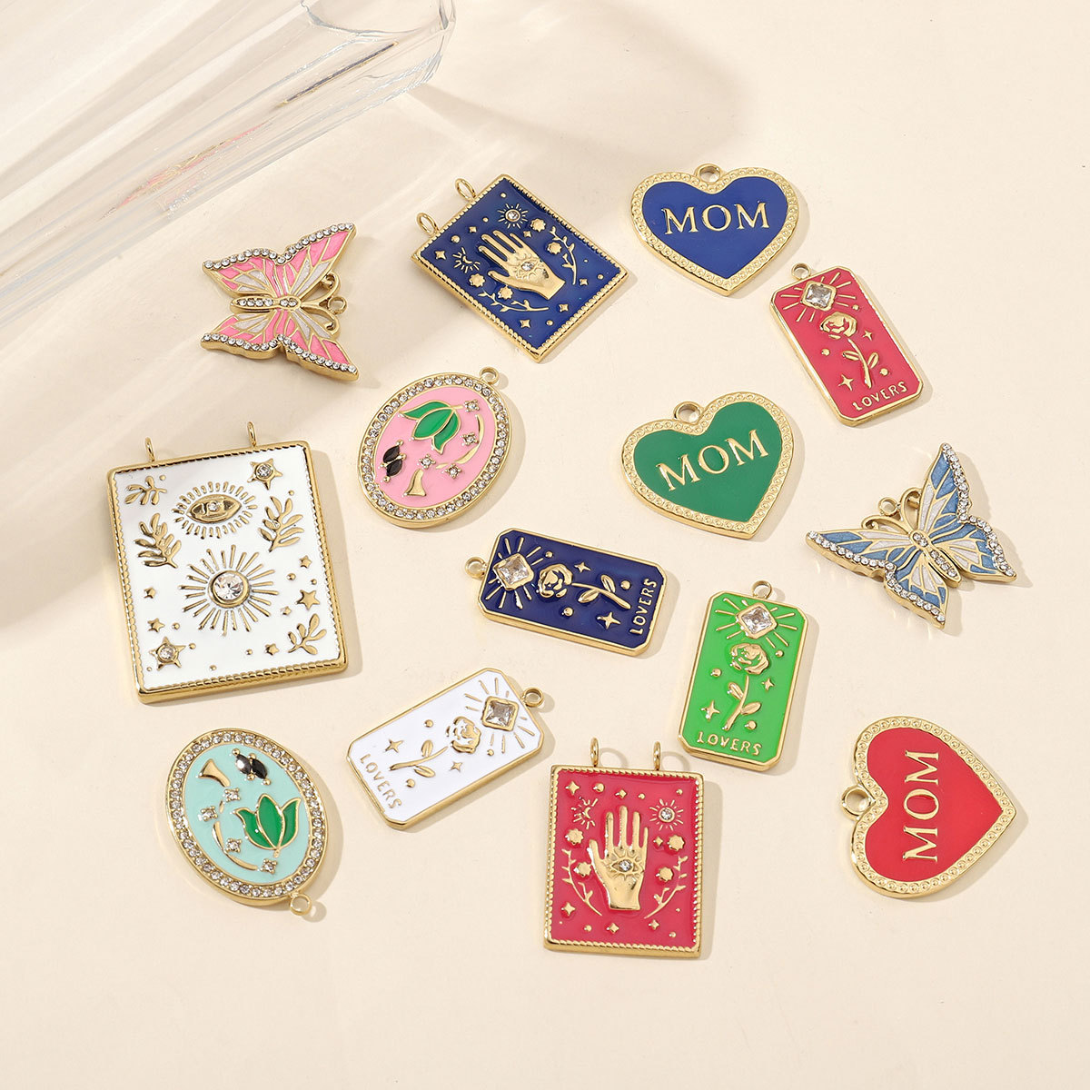 Pendentifs en acier inoxydable émail, Acier inoxydable 304, Placage de couleur d'or, DIY, plus de couleurs à choisir Vendu par sac