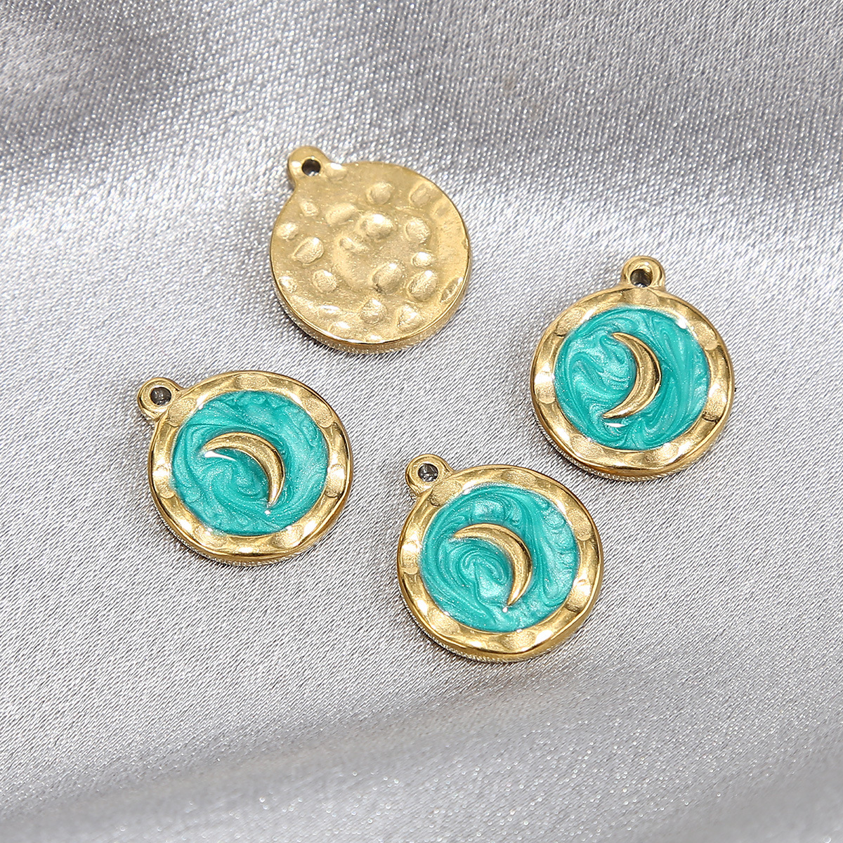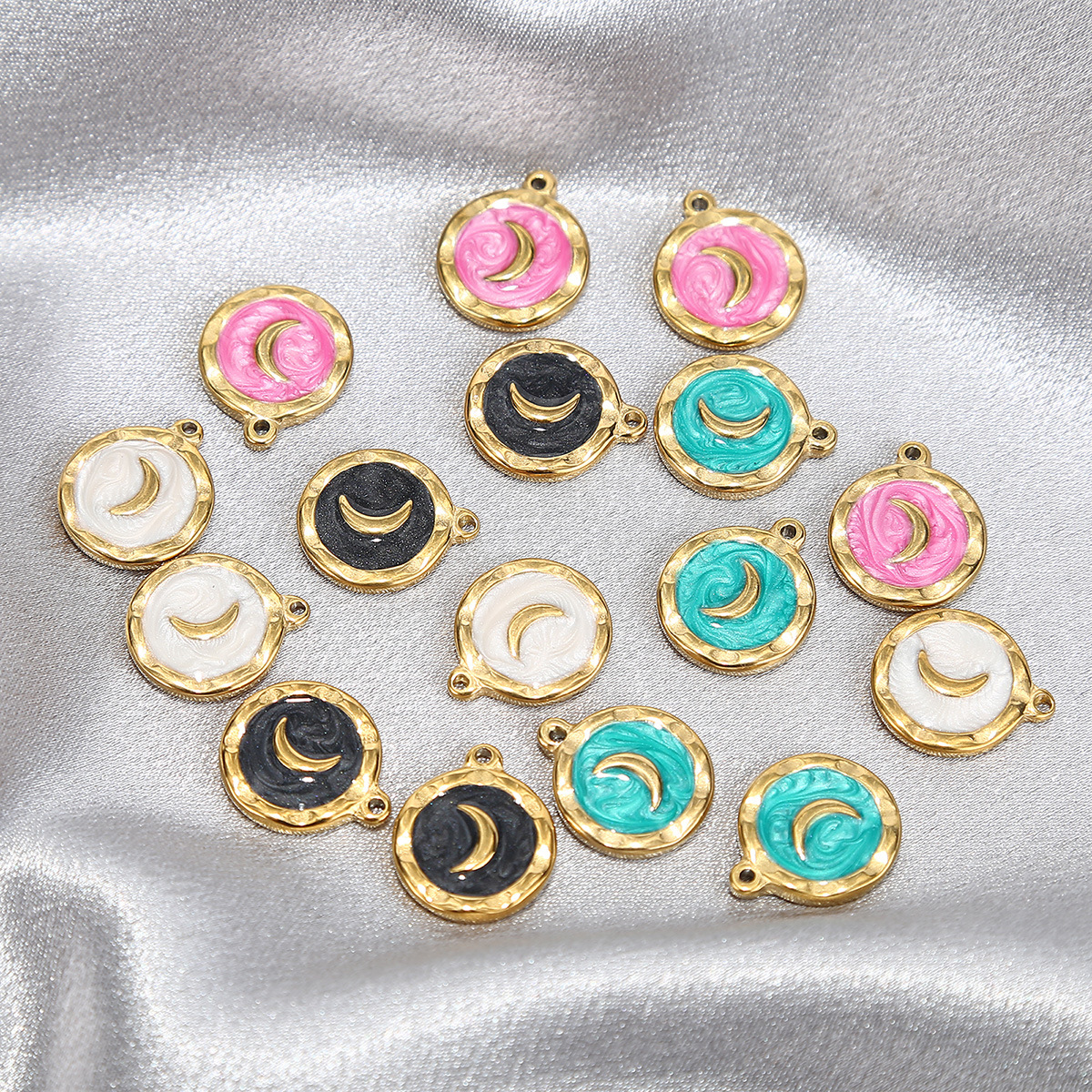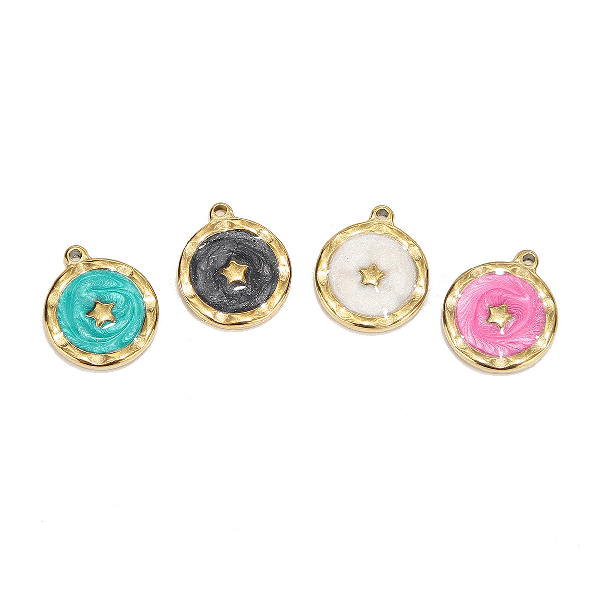 Pendentifs en acier inoxydable émail, Acier inoxydable 304, Rond, Placage de couleur d'or, DIY & modèles différents pour le choix, plus de couleurs à choisir, Vendu par PC