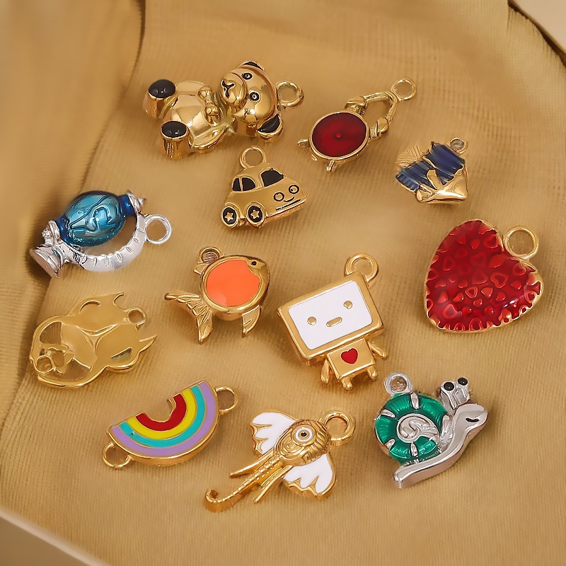 Pendentifs en acier inoxydable émail, Acier inoxydable 304, Placage de couleur d'or, DIY, plus de couleurs à choisir Vendu par sac