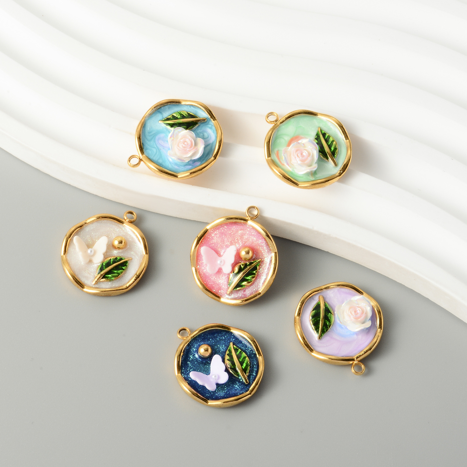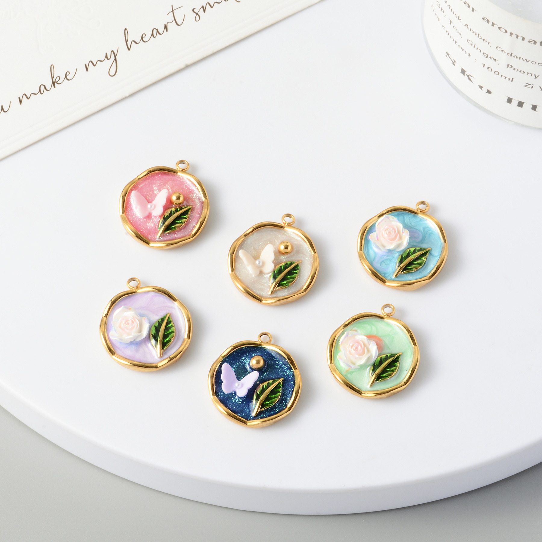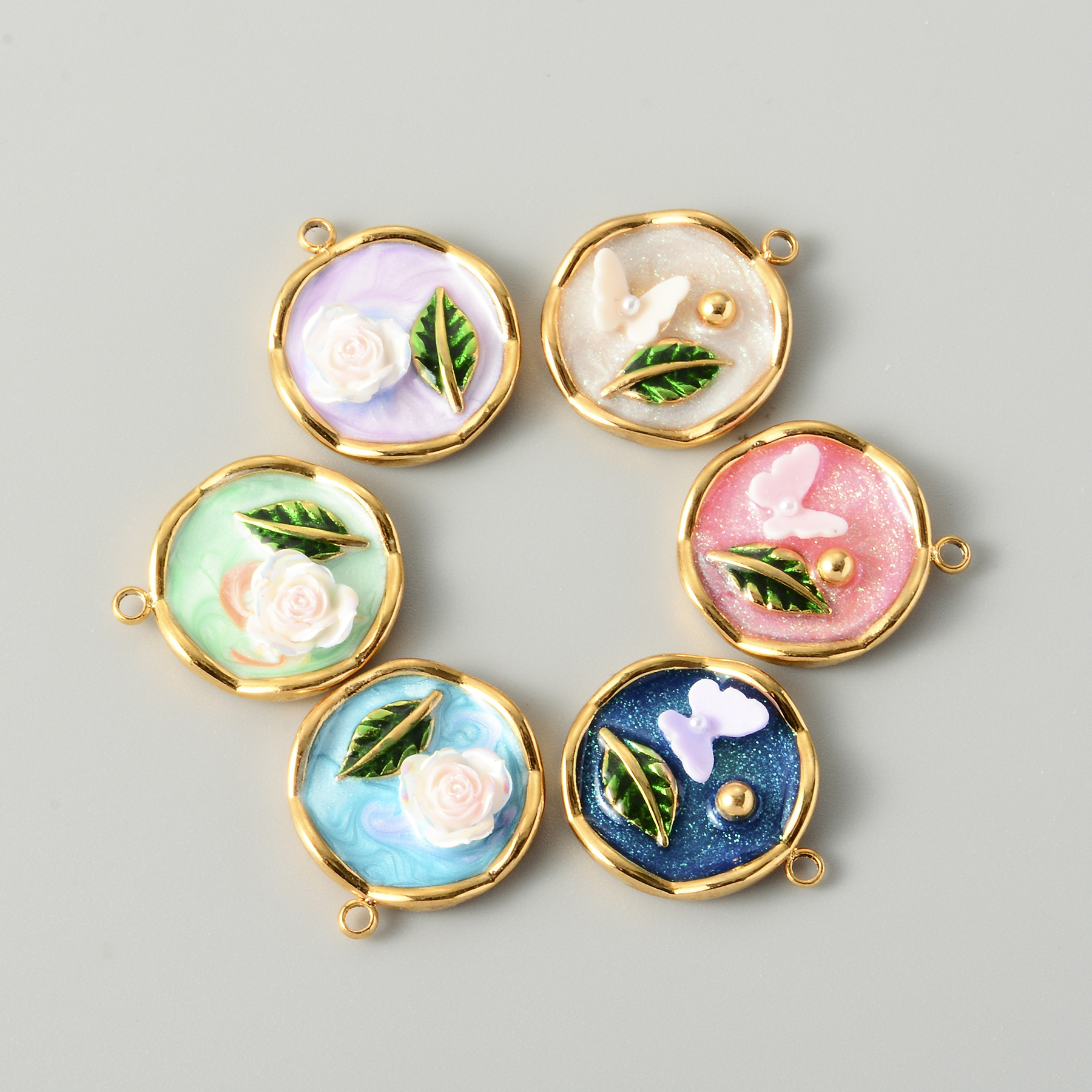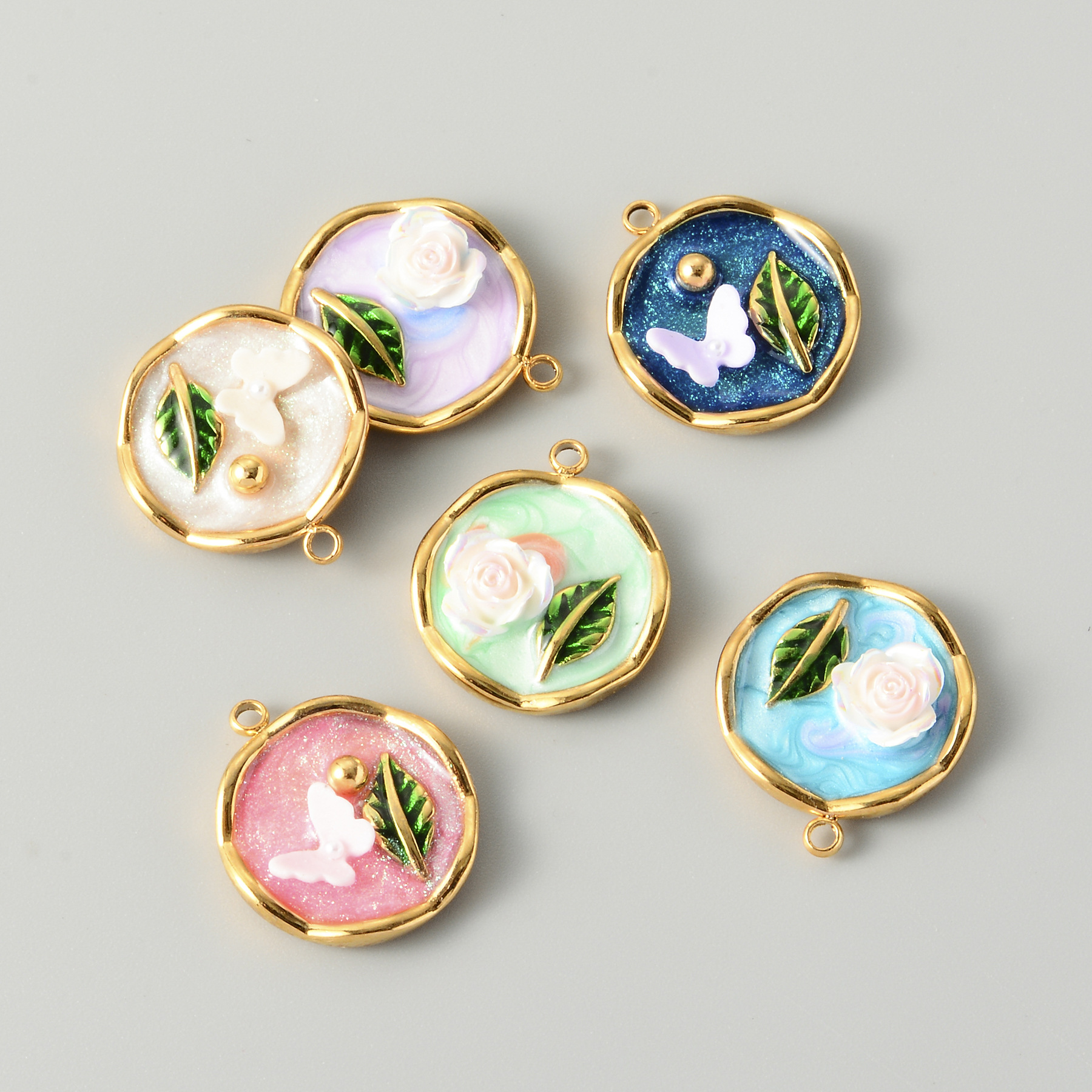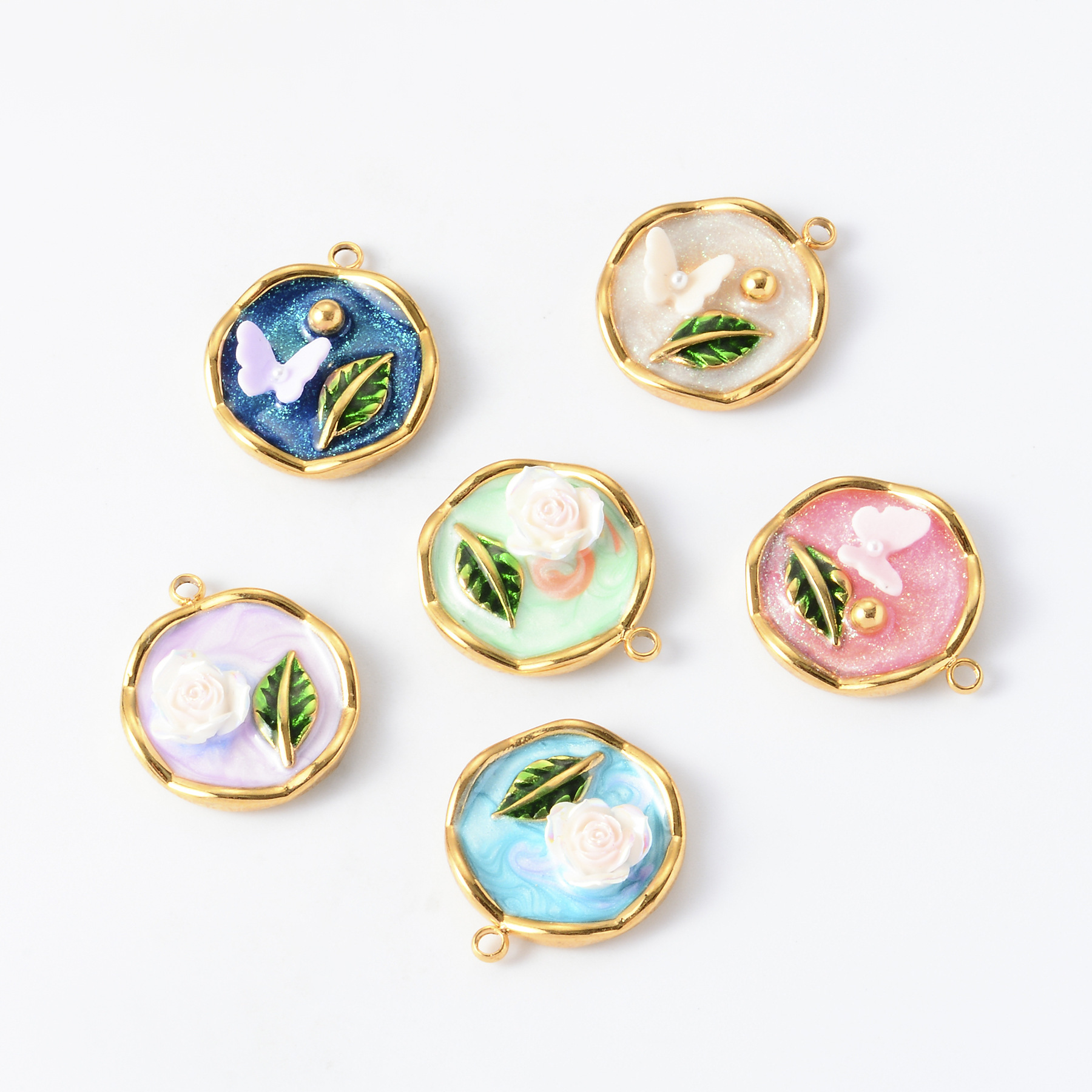 Pendentifs en acier inoxydable émail, Acier inoxydable 304, Placage de couleur d'or, DIY, plus de couleurs à choisir Vendu par sac