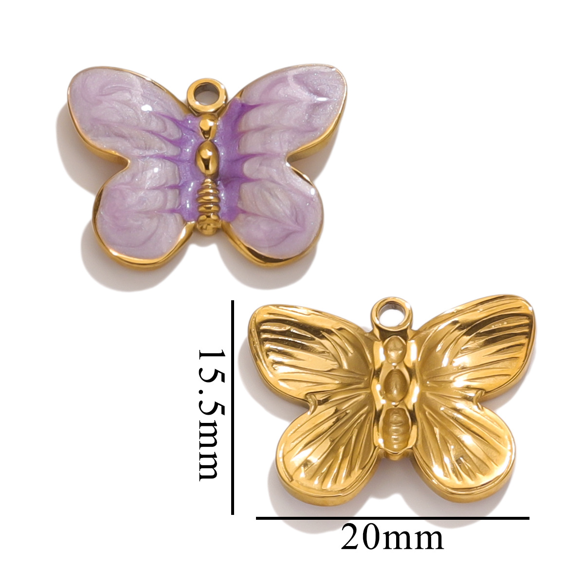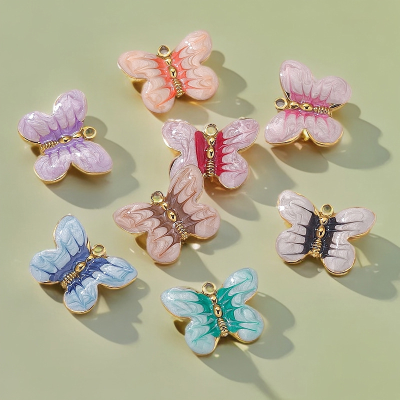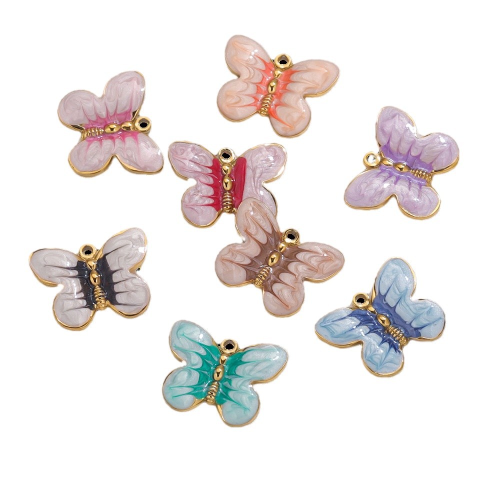 Pendentifs en acier inoxydable émail, Acier inoxydable 304, papillon, Placage de couleur d'or, DIY, plus de couleurs à choisir, 5PC/sac, Vendu par sac