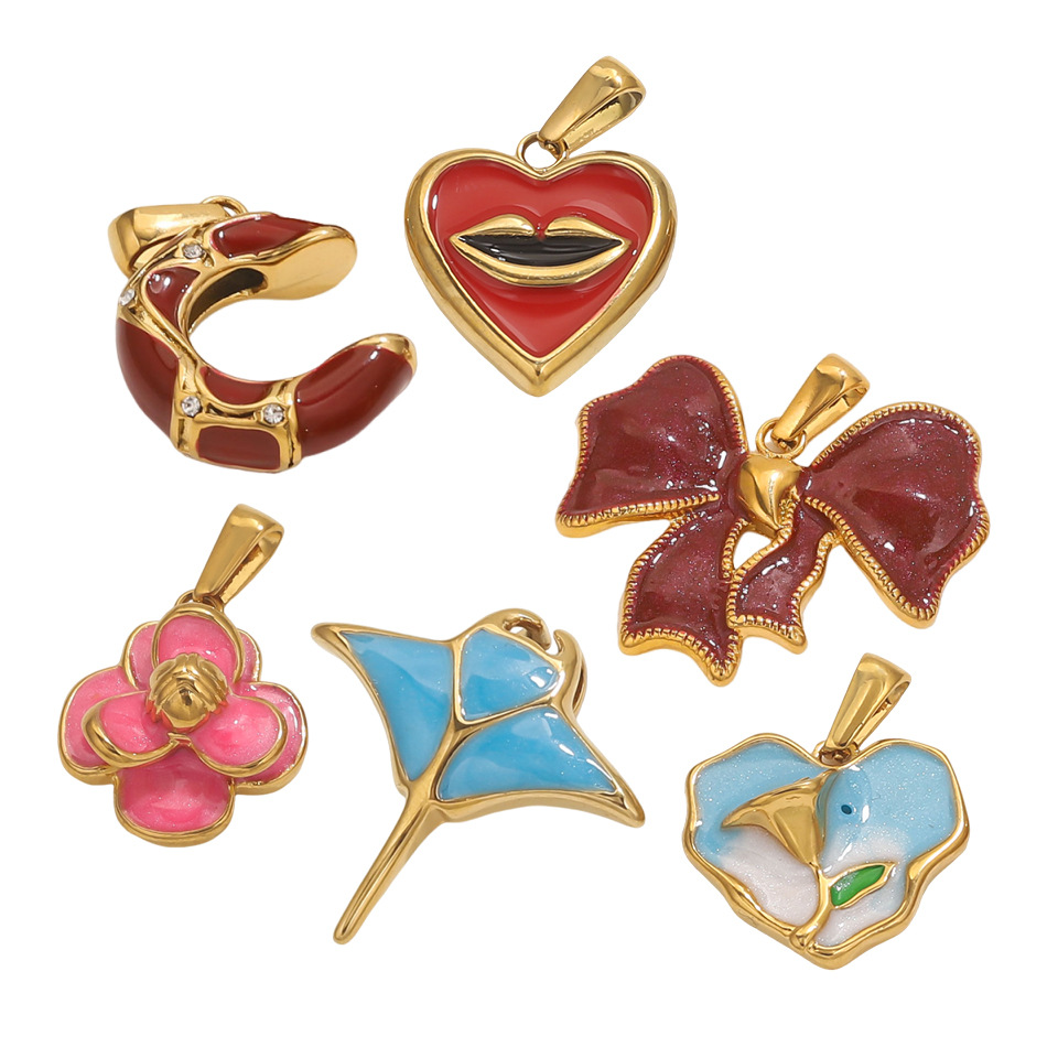 Pendentifs en acier inoxydable émail, Acier inoxydable 304, Placage de couleur d'or, DIY, plus de couleurs à choisir Vendu par sac