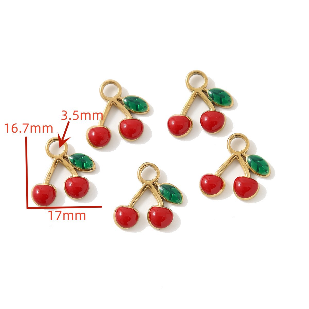Pendentifs en acier inoxydable émail, Acier inoxydable 304, cerise, Placage de couleur d'or, DIY, doré, 10PC/sac, Vendu par sac