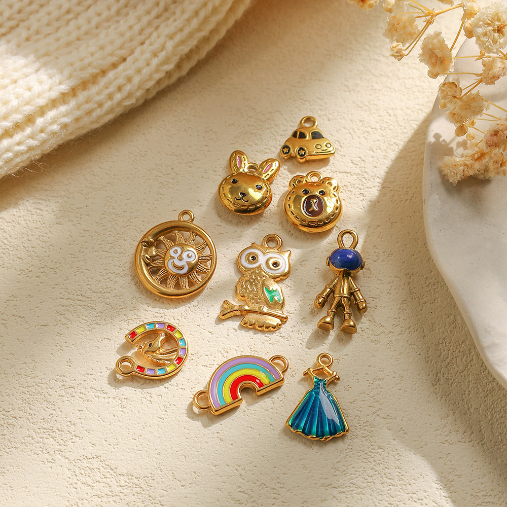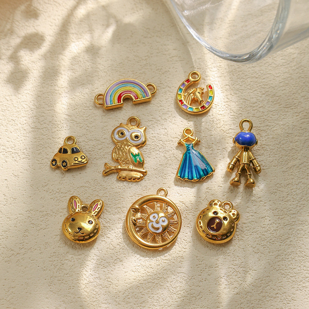 Pendentifs en acier inoxydable émail, Acier inoxydable 304, Placage de couleur d'or, DIY, plus de couleurs à choisir Vendu par sac