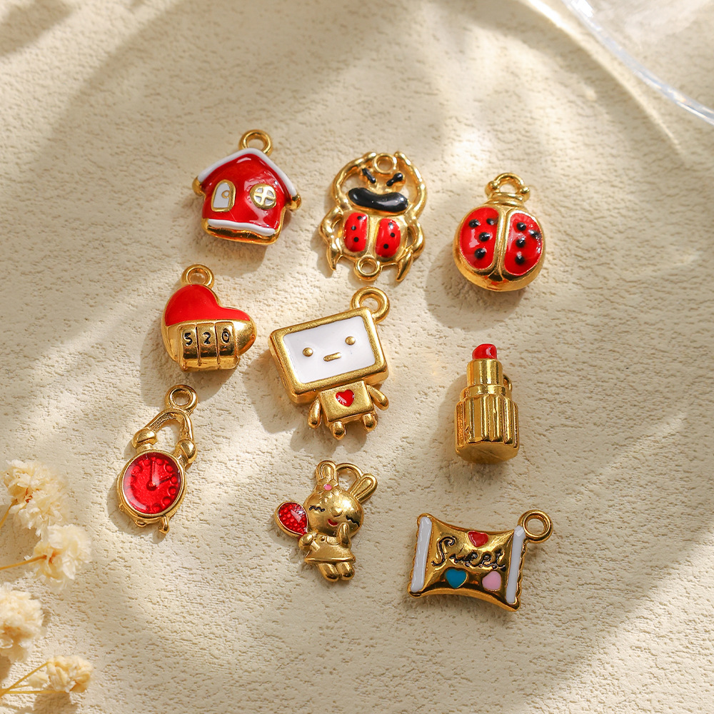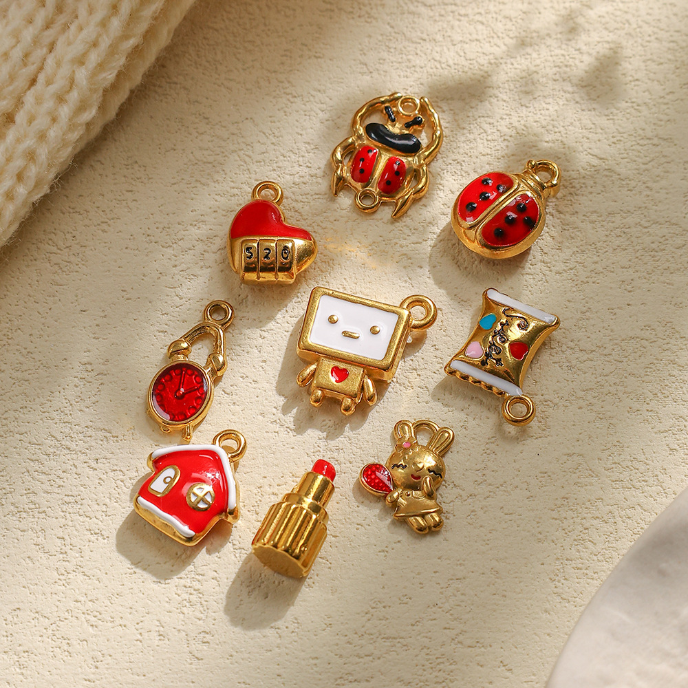Pendentifs en acier inoxydable émail, Acier inoxydable 304, Placage de couleur d'or, DIY, plus de couleurs à choisir Vendu par sac