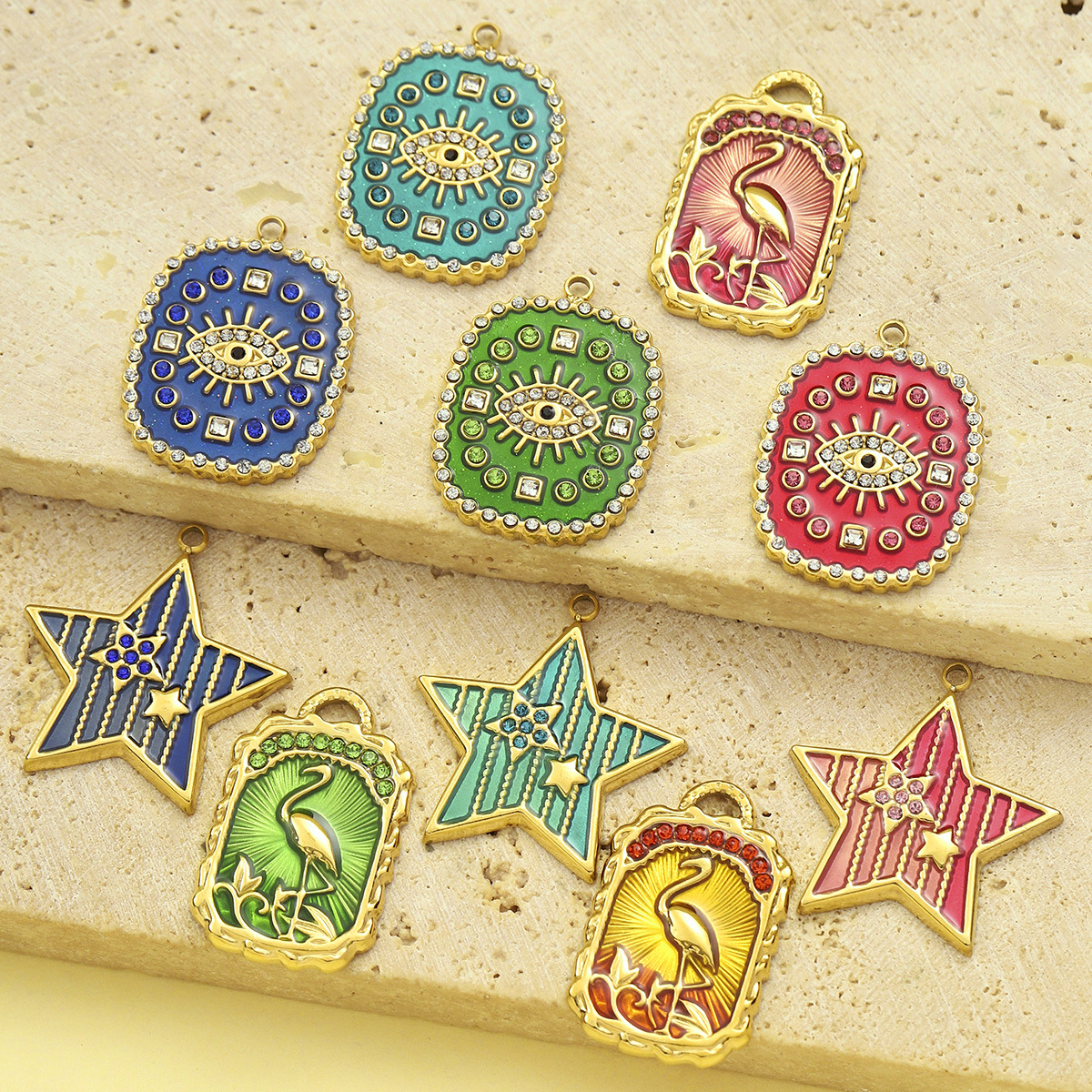 Pendentifs en acier inoxydable émail, Acier inoxydable 304, Placage de couleur d'or, DIY, plus de couleurs à choisir Vendu par sac