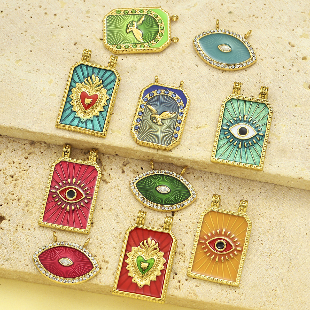 Pendentifs en acier inoxydable émail, Acier inoxydable 304, Placage ionique sous vide, Forme différente pour le choix & DIY & avec strass, plus de couleurs à choisir, 3PC/sac, Vendu par sac