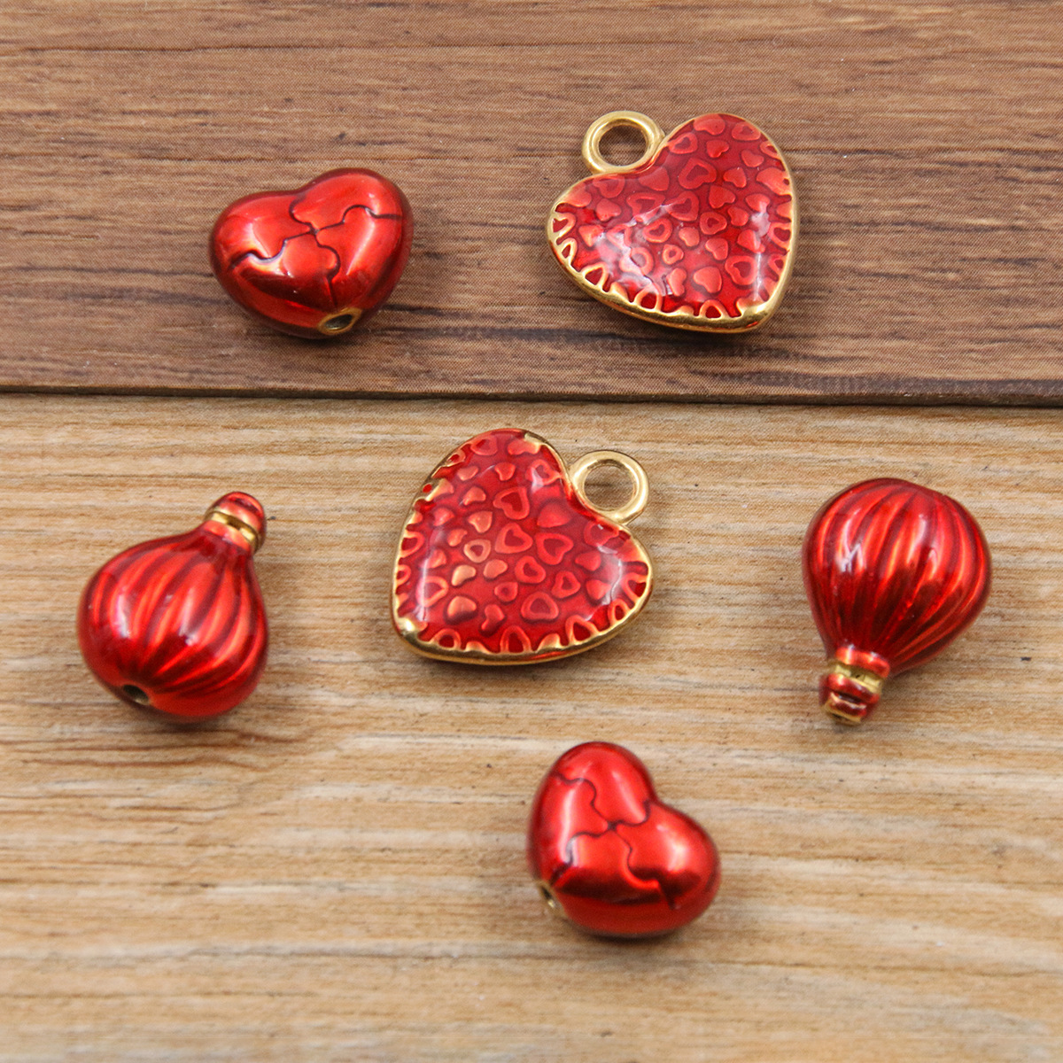 Pendentifs en acier inoxydable émail, Acier inoxydable 304, Placage de couleur d'or, DIY & styles différents pour le choix, rouge, Vendu par PC