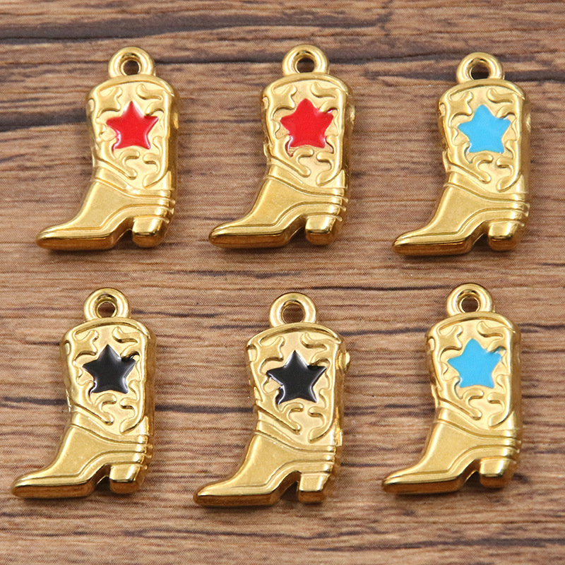 Pendentifs en acier inoxydable émail, Acier inoxydable 304, chaussures, Placage de couleur d'or, DIY, plus de couleurs à choisir, 13x20mm, 10PC/sac, Vendu par sac
