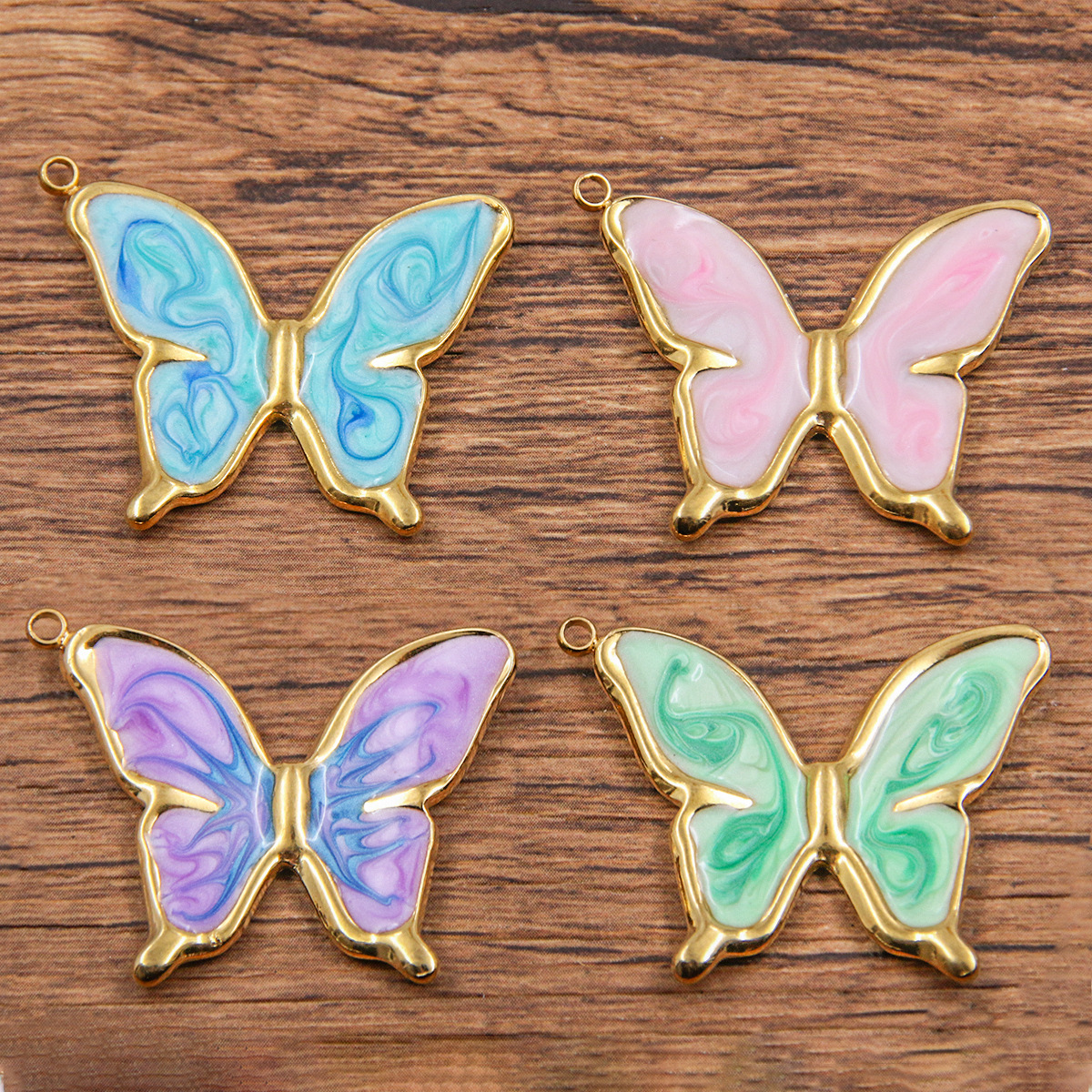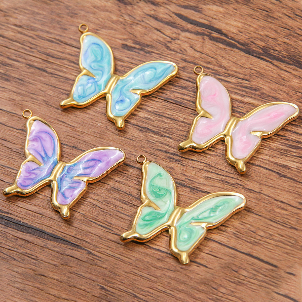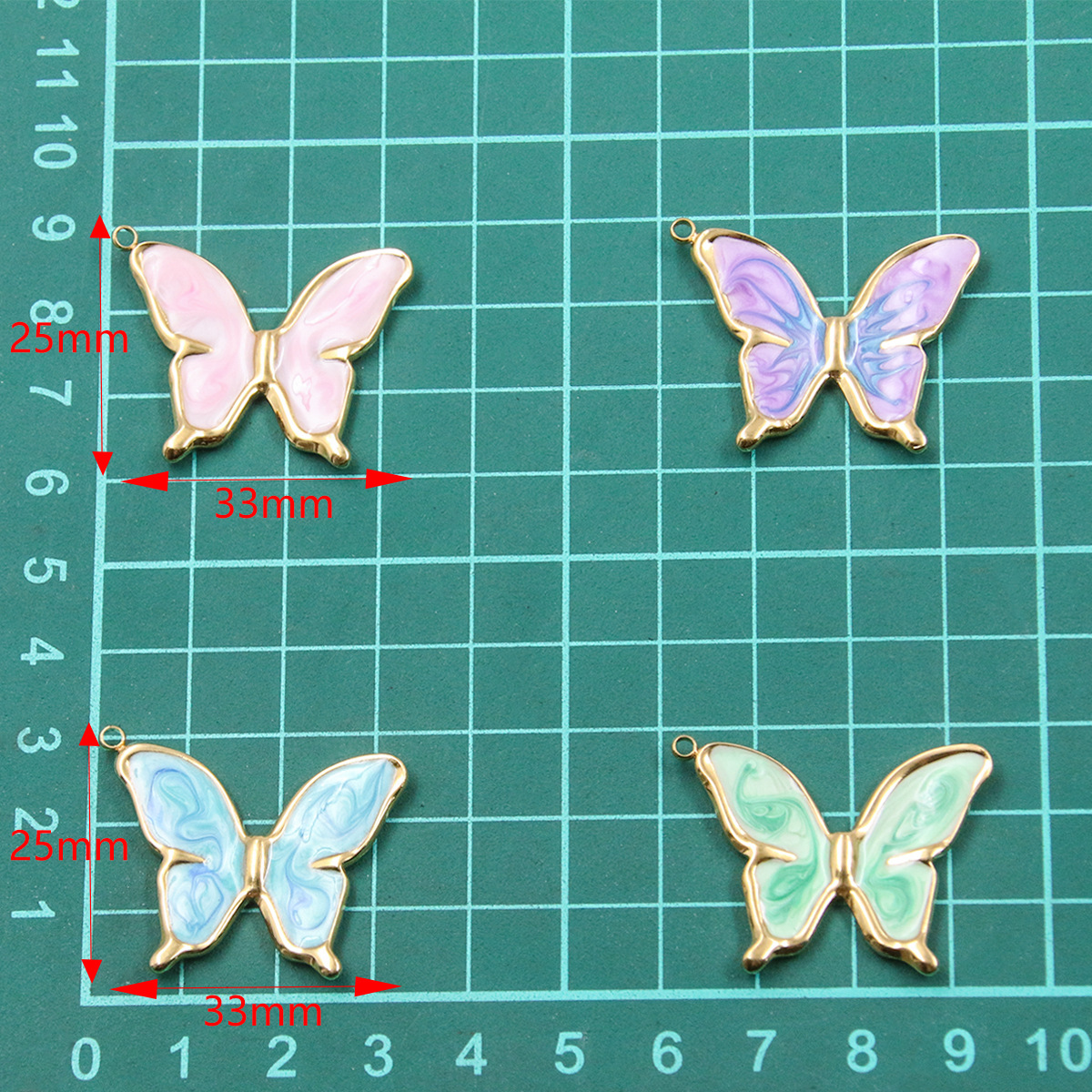 Pendentifs en acier inoxydable émail, Acier inoxydable 304, papillon, Placage de couleur d'or, DIY, plus de couleurs à choisir, 33x25mm, 10PC/sac, Vendu par sac