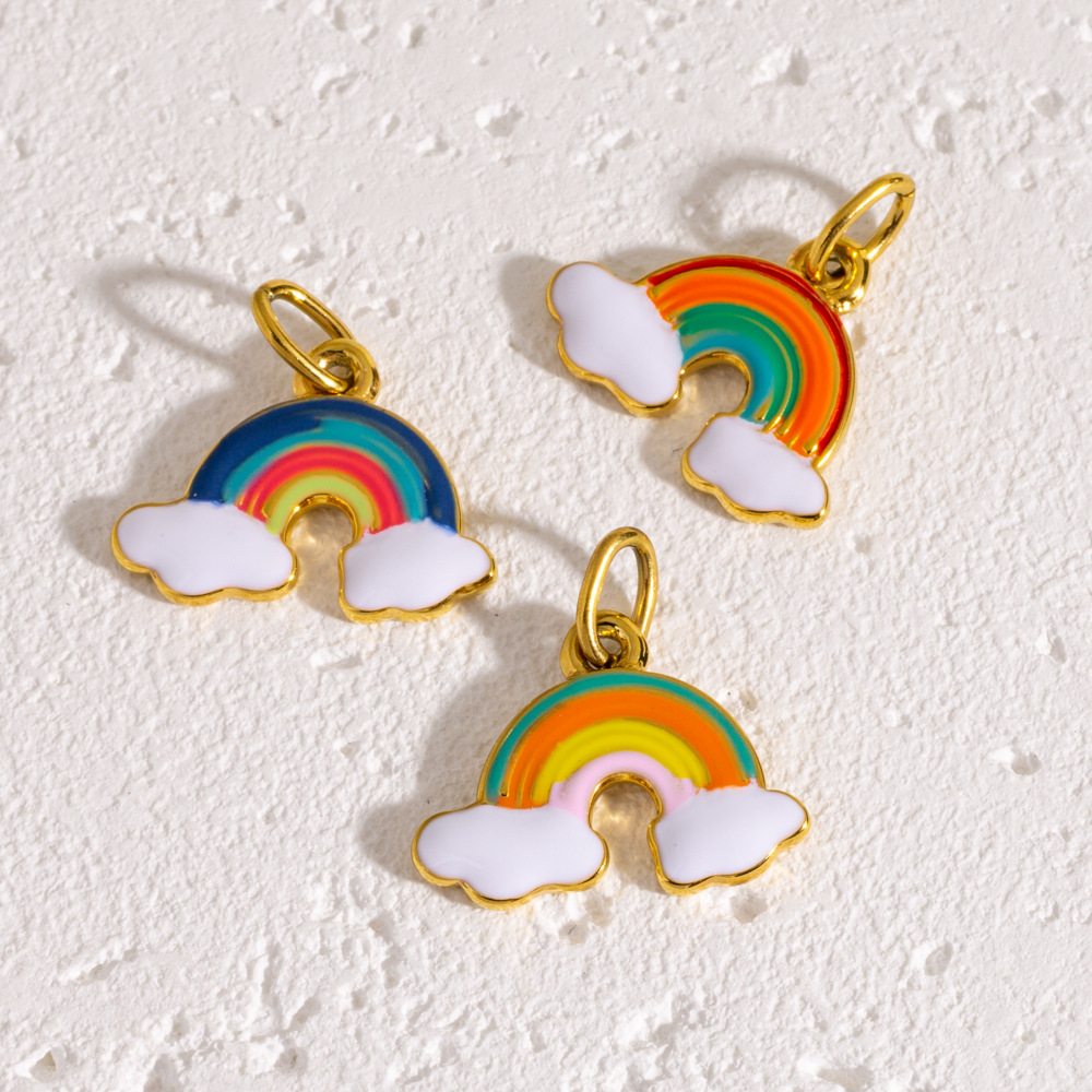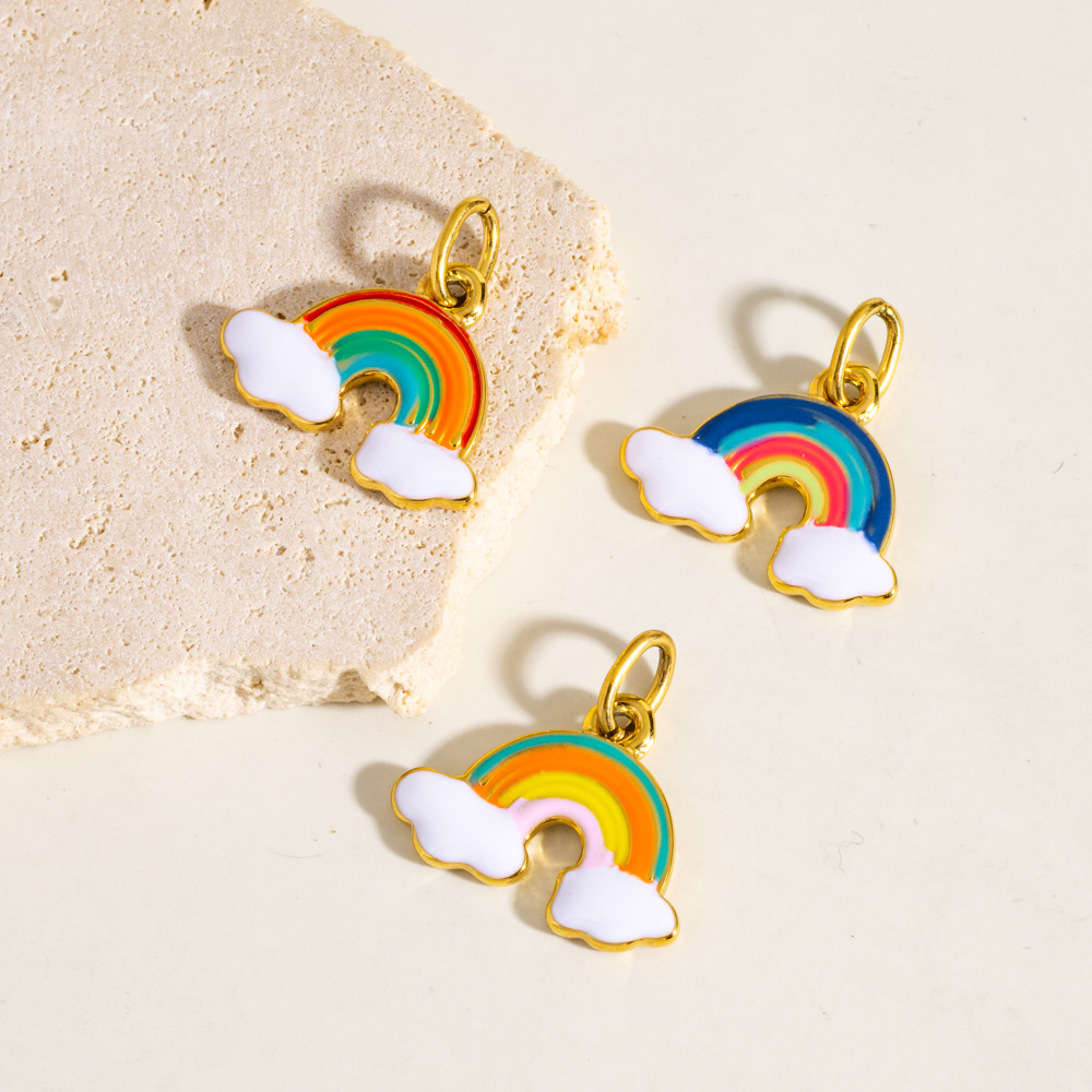 Pendentifs en acier inoxydable émail, Acier inoxydable 304, Arc en ciel, Placage ionique sous vide, DIY, plus de couleurs à choisir, 18.8x14.8mm, 10PC/sac, Vendu par sac