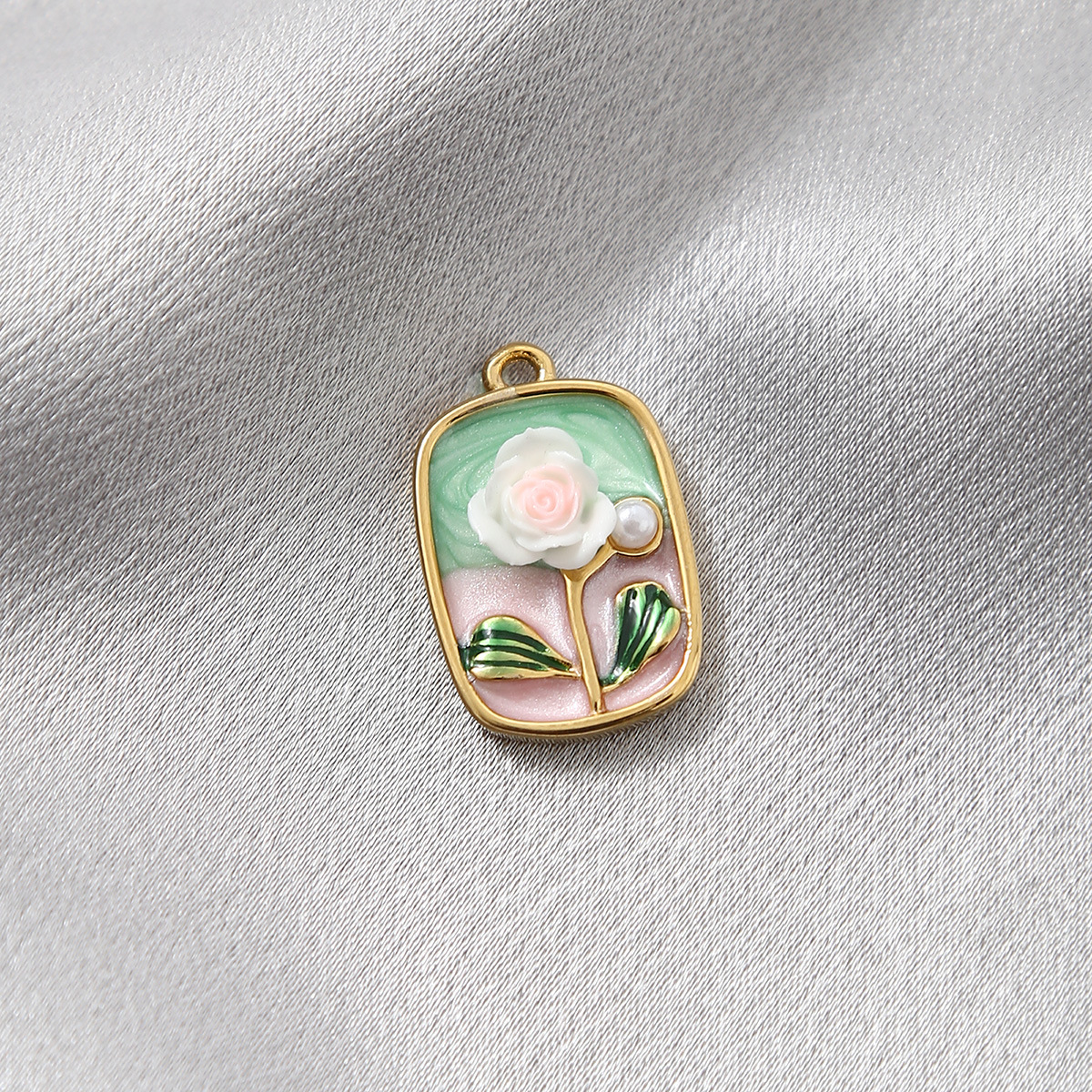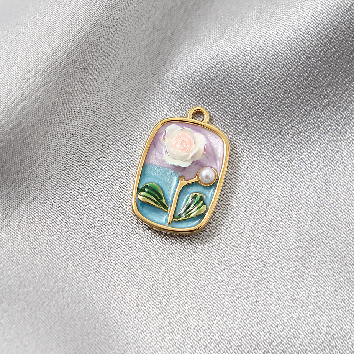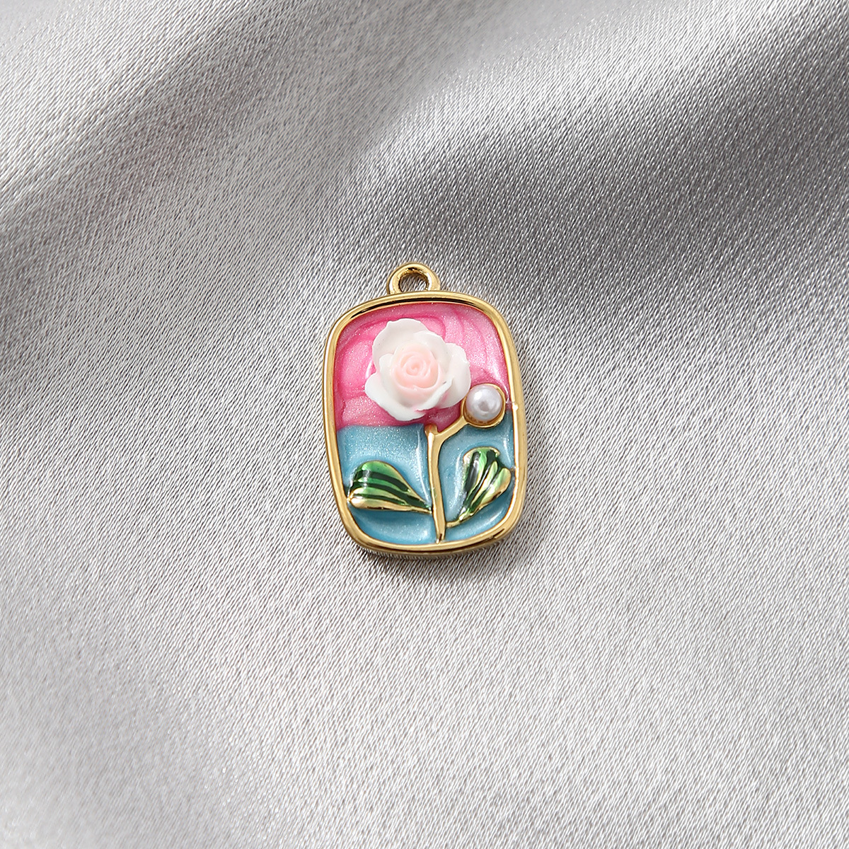 Pendentifs en acier inoxydable émail, Acier inoxydable 304, avec perle de plastique, rectangle, Placage de couleur d'or, DIY, plus de couleurs à choisir, Vendu par PC