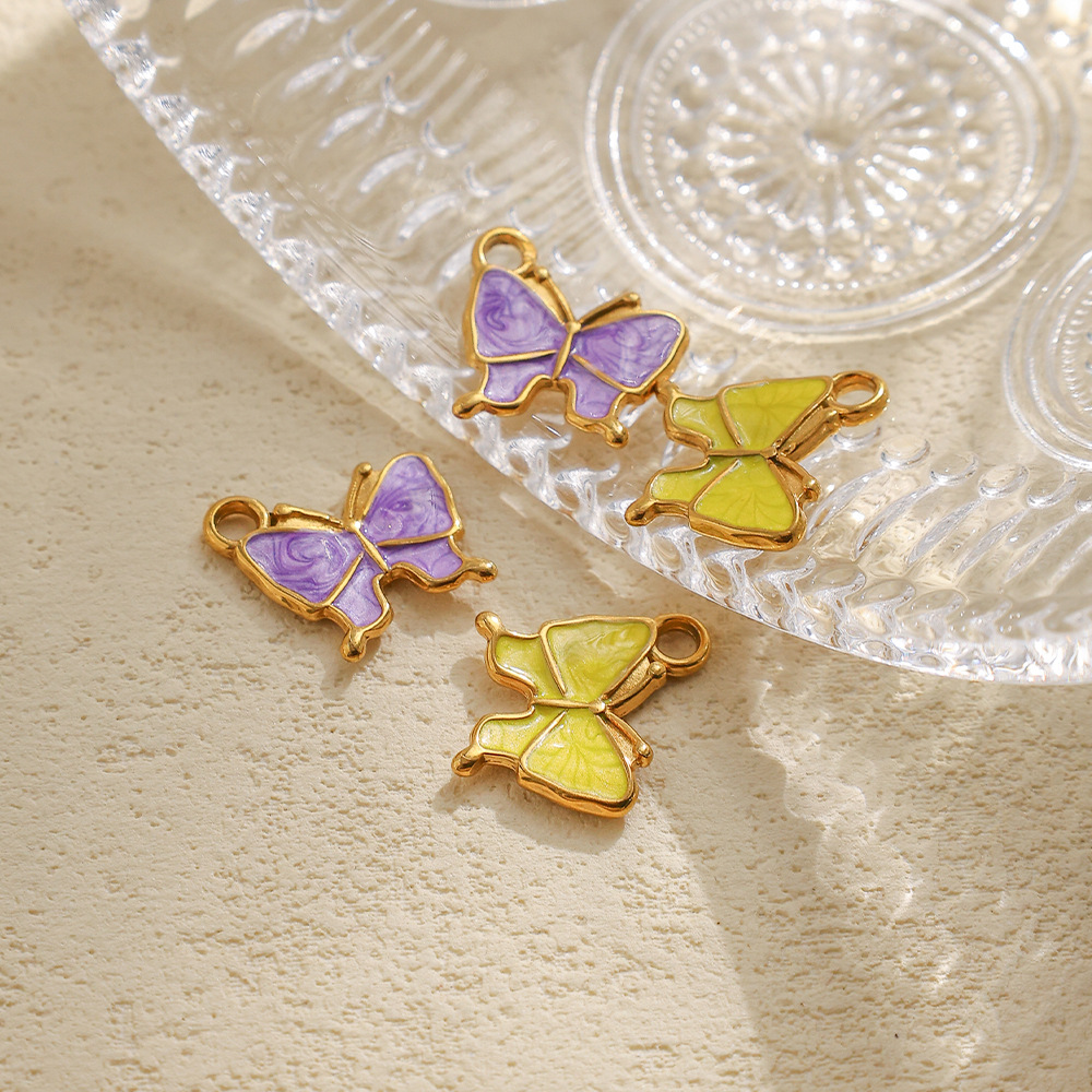 Pendentifs en acier inoxydable émail, Acier inoxydable 304, papillon, Placage de couleur d'or, DIY, plus de couleurs à choisir, Vendu par PC