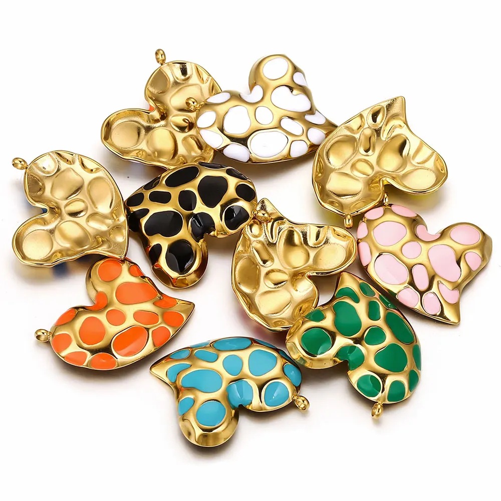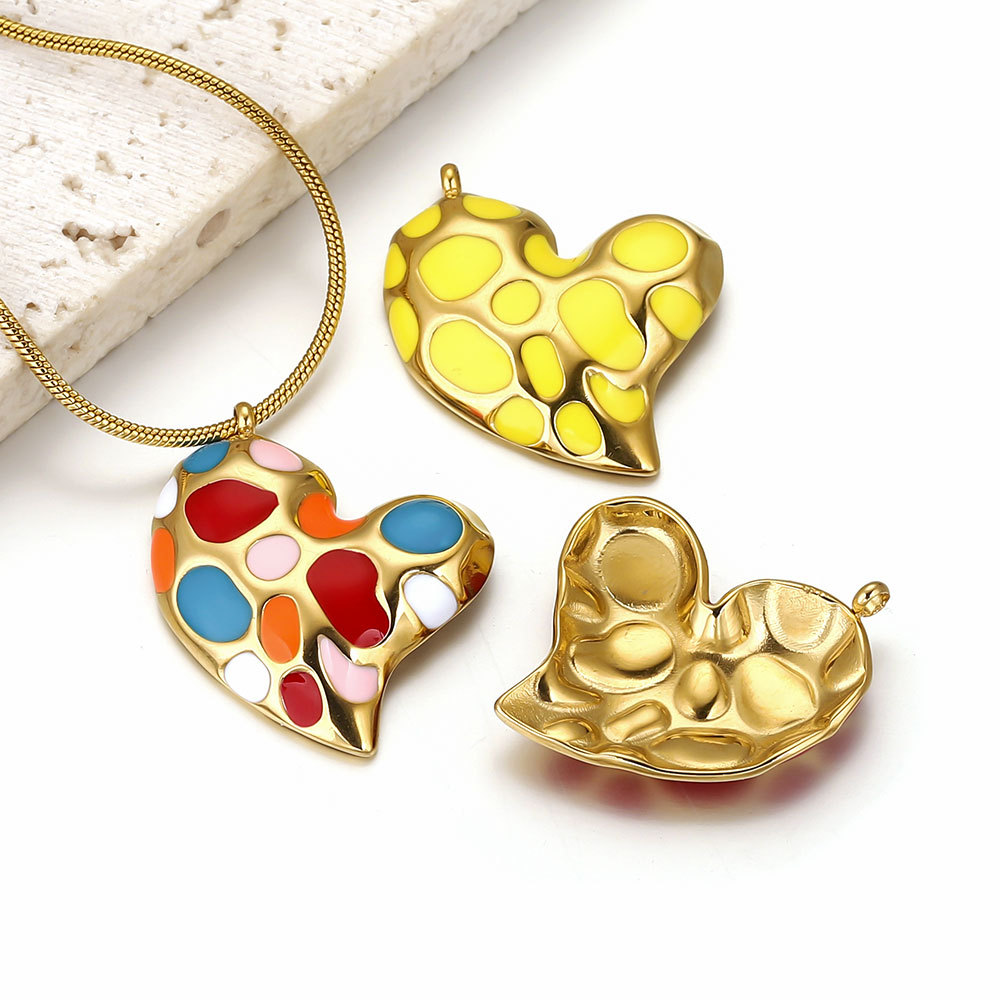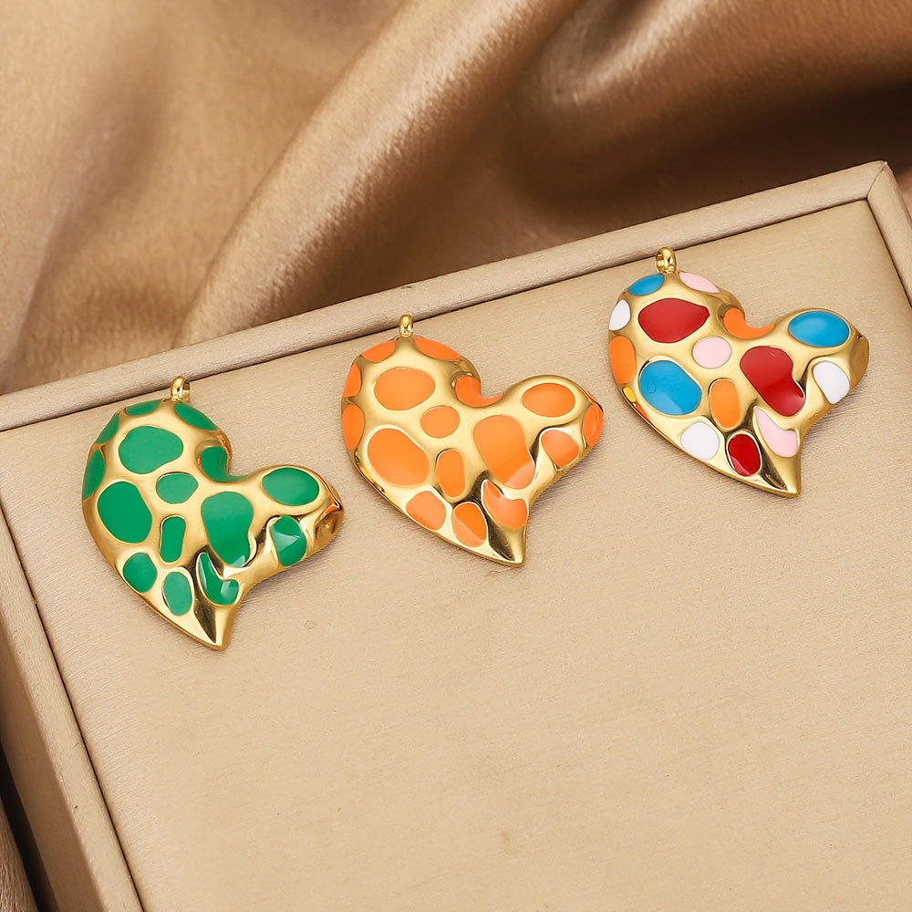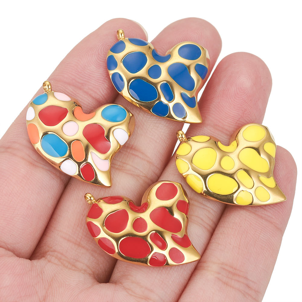 Pendentifs en acier inoxydable émail, Acier inoxydable 304, coeur, Placage de couleur d'or, DIY, plus de couleurs à choisir, Vendu par PC