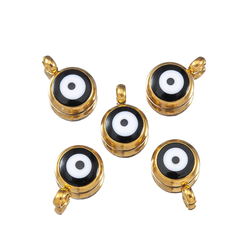 Pendentifs en acier inoxydable émail, Acier inoxydable 304, Rond, Placage de couleur d'or, DIY, plus de couleurs à choisir, 10PC/sac, Vendu par sac