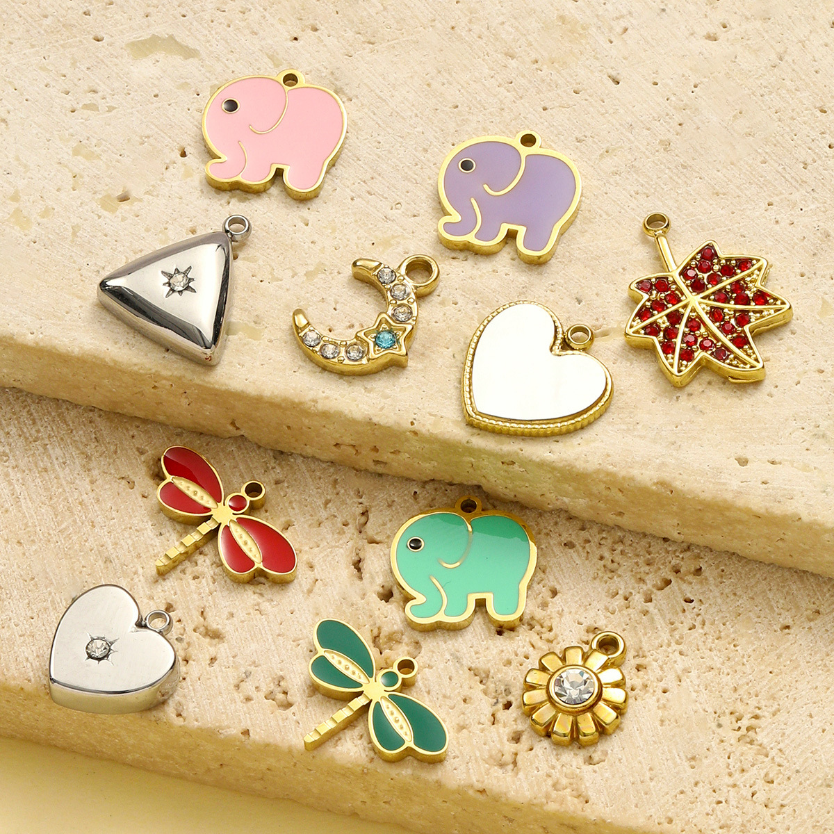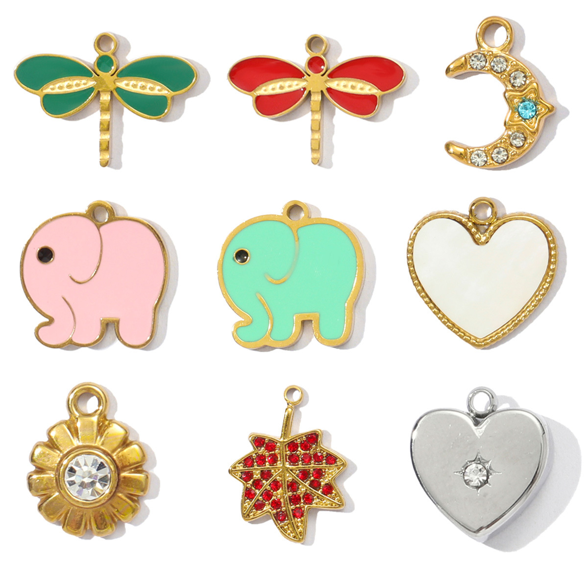 Pendentifs en acier inoxydable émail, Acier inoxydable 304, Placage de couleur d'or, DIY, plus de couleurs à choisir Vendu par sac