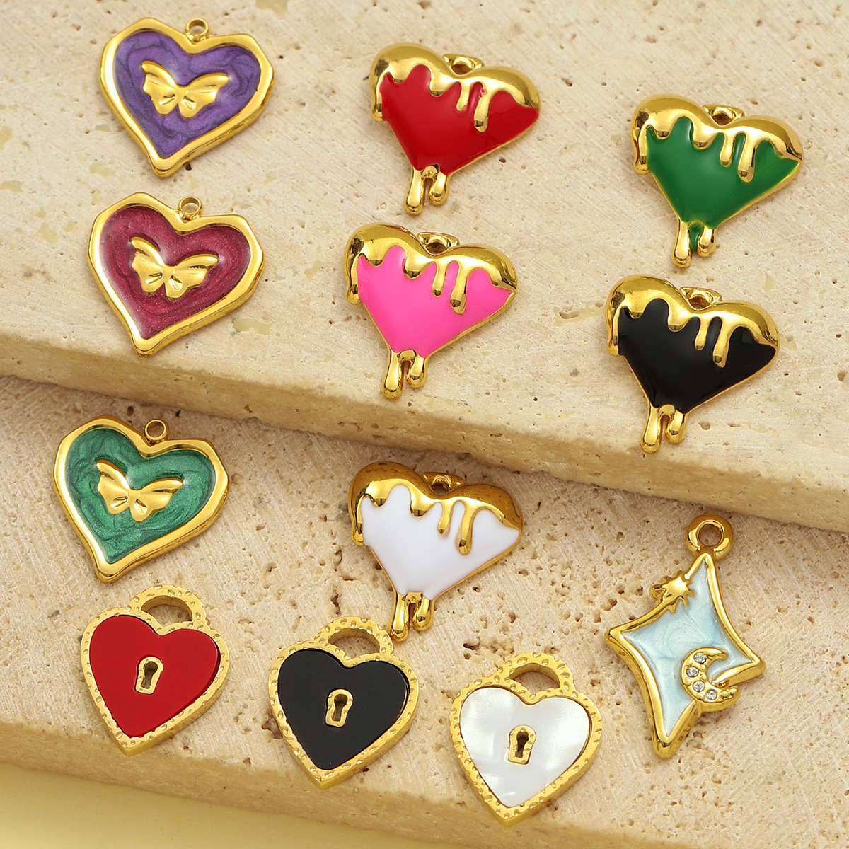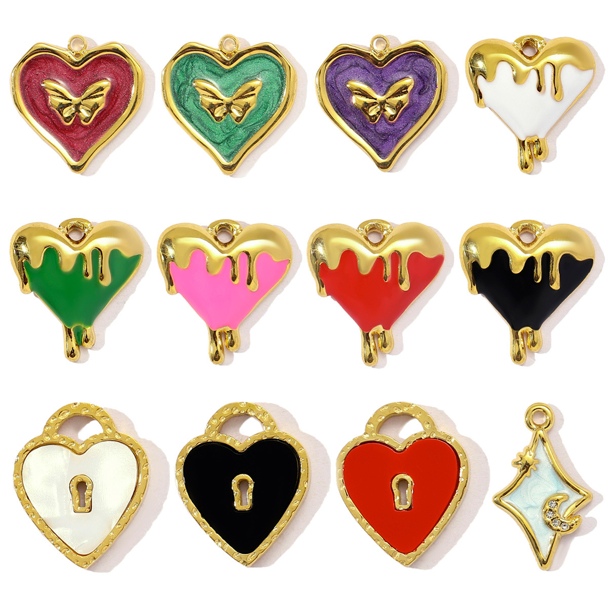 Pendentifs en acier inoxydable émail, Acier inoxydable 304, Placage de couleur d'or, DIY, plus de couleurs à choisir Vendu par sac
