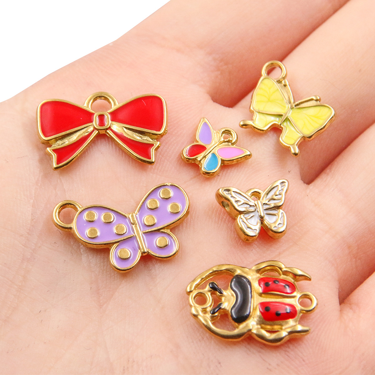 Pendentifs en acier inoxydable émail, Acier inoxydable 304, Placage de couleur d'or, DIY, plus de couleurs à choisir Vendu par sac