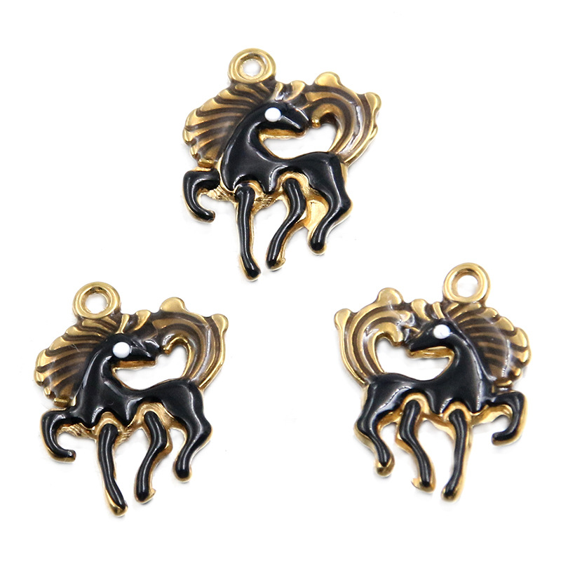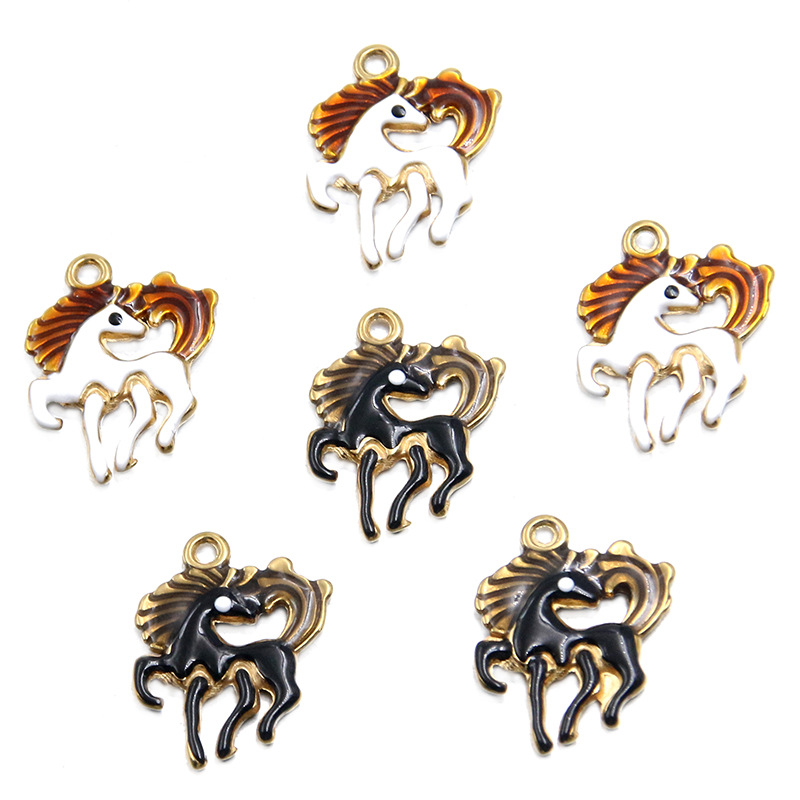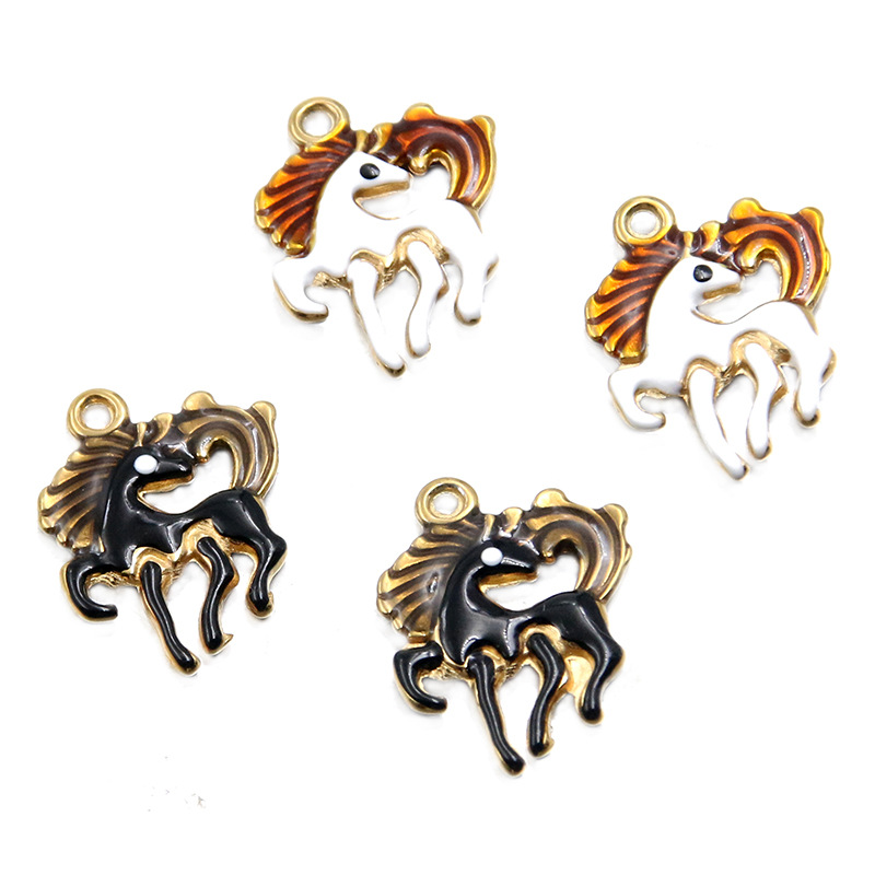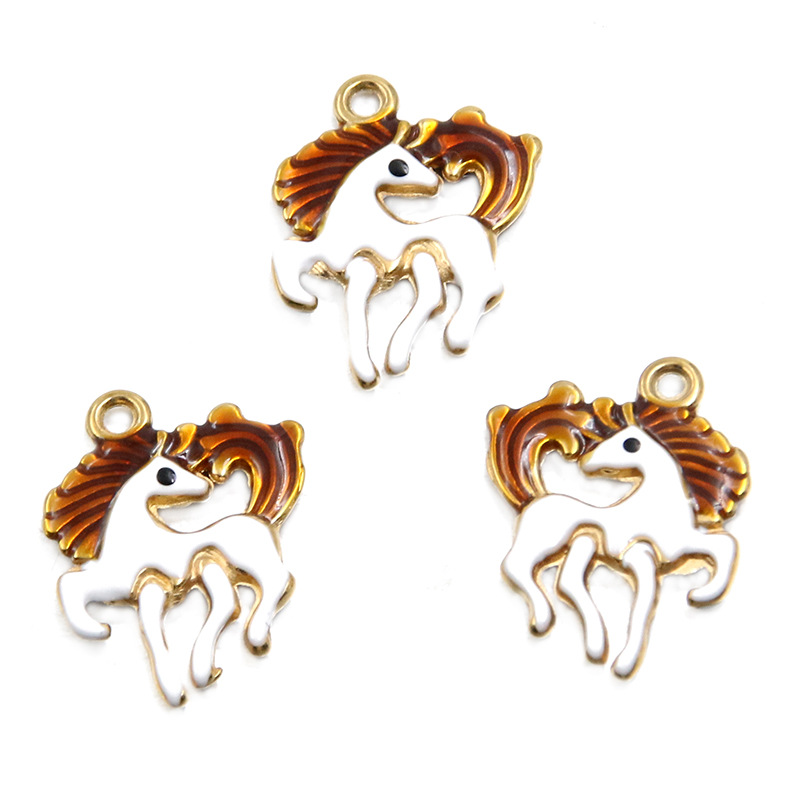 Pendentifs en acier inoxydable émail, Acier inoxydable 304, Licorne, Placage ionique sous vide, DIY, plus de couleurs à choisir, 16x20mm, 10PC/sac, Vendu par sac