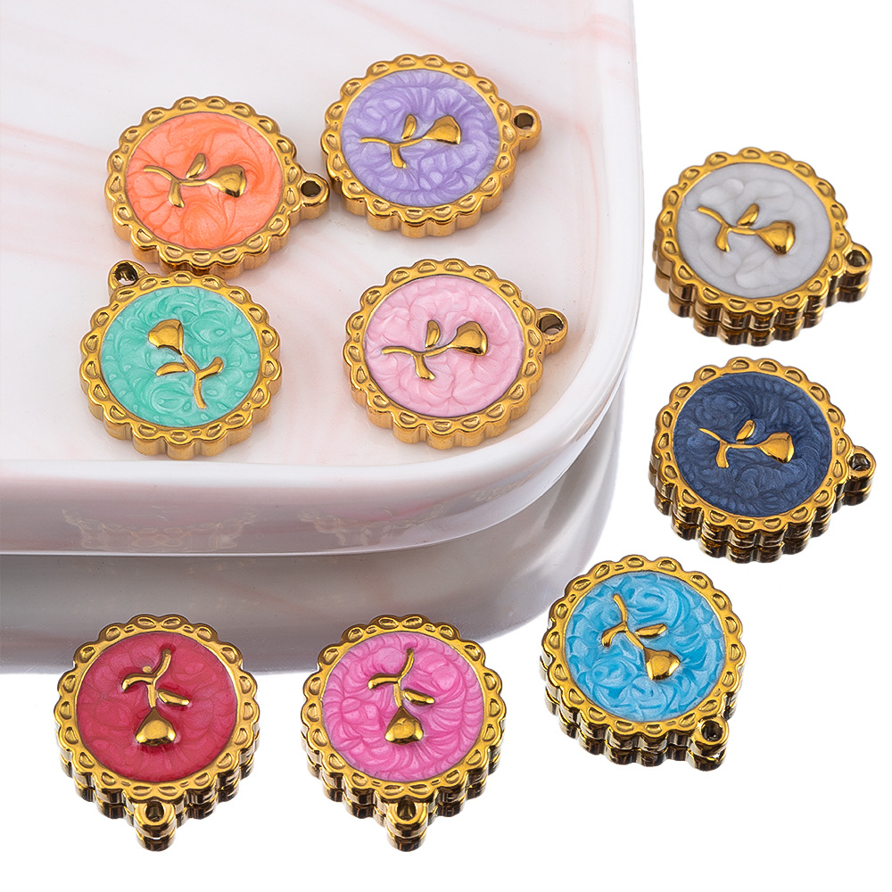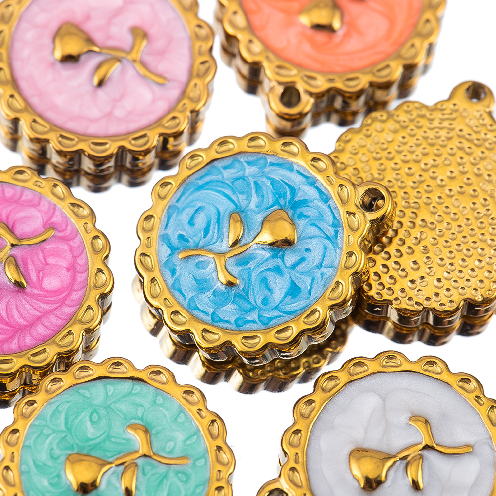 Pendentifs en acier inoxydable émail, Acier inoxydable 304, Placage de couleur d'or, DIY, plus de couleurs à choisir Vendu par sac