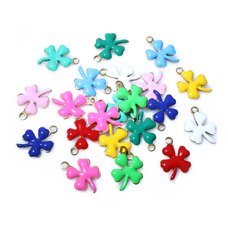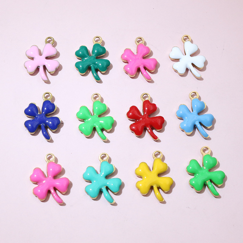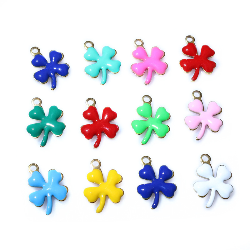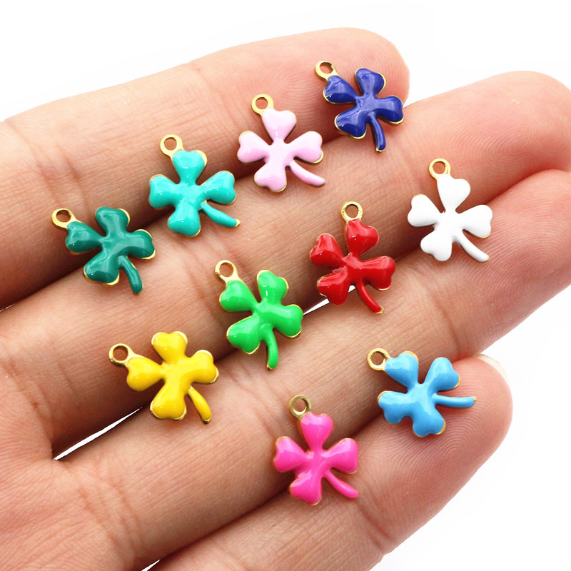 Pendentifs en acier inoxydable émail, Acier inoxydable 304, Trèfle à quatre feuilles, Placage de couleur d'or, DIY, plus de couleurs à choisir, 13x10mm, Vendu par PC