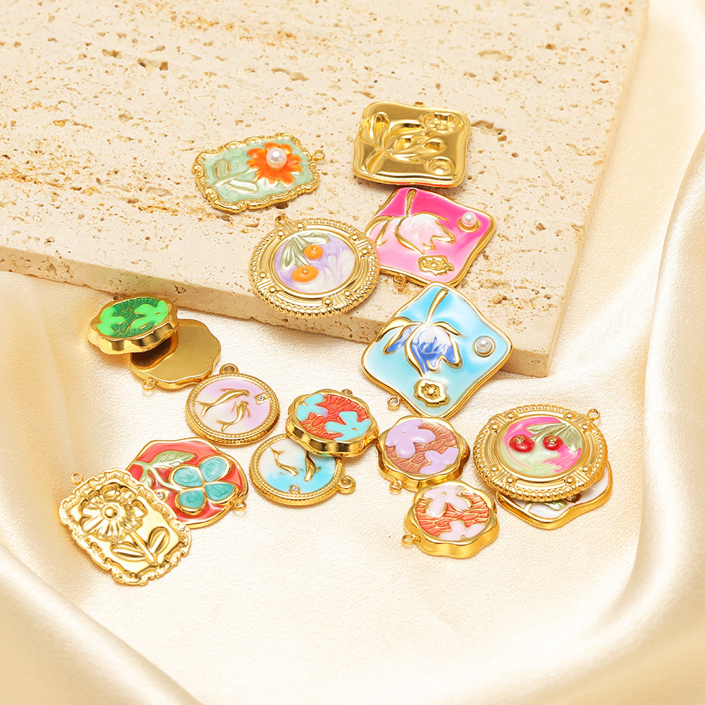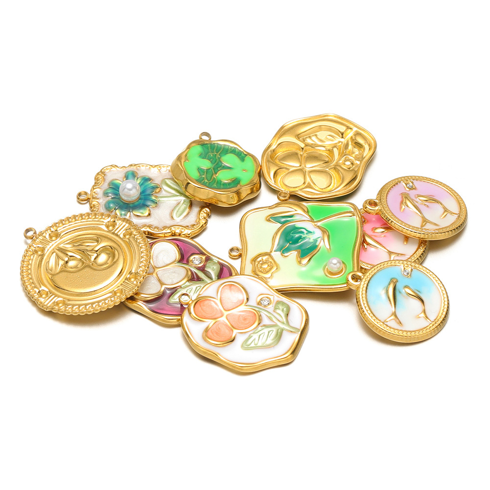 Pendentifs en acier inoxydable émail, Acier inoxydable 304, Placage de couleur d'or, DIY, plus de couleurs à choisir Vendu par sac