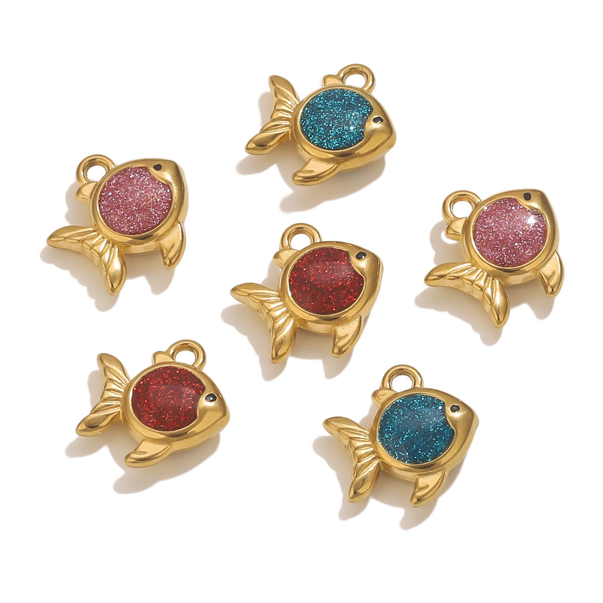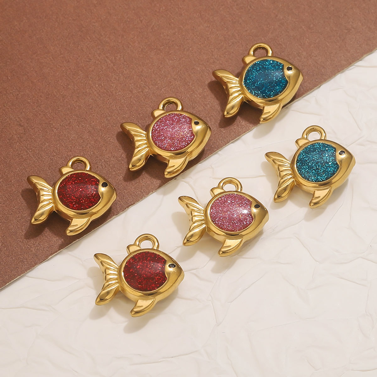 Pendentifs en acier inoxydable émail, Acier inoxydable 304, poisson, Placage de couleur d'or, DIY, plus de couleurs à choisir, 5PC/sac, Vendu par sac